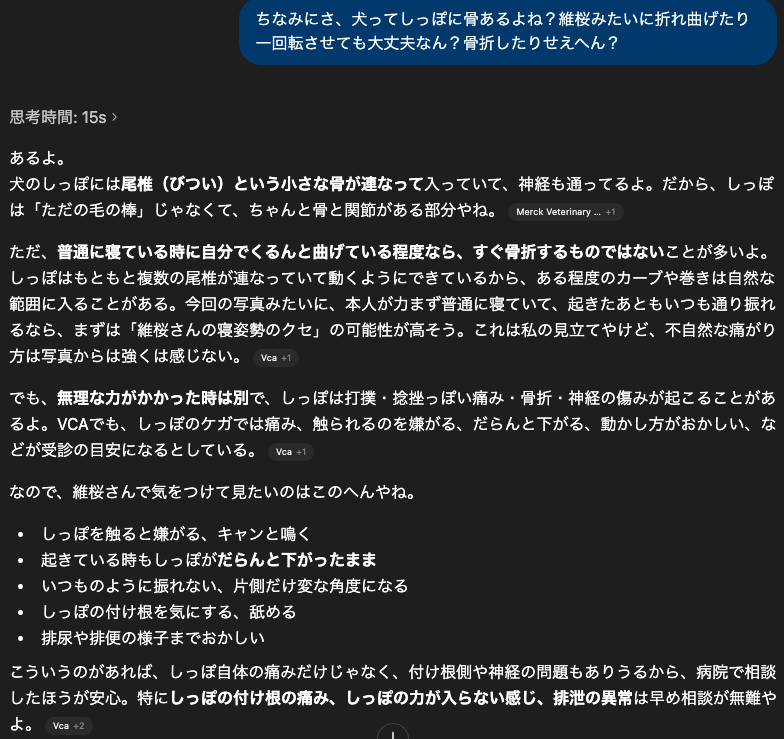 ちなみに今回の維桜さんのしっぽについてChatGPTに尋ねてみたところ、こんな返答がきました。