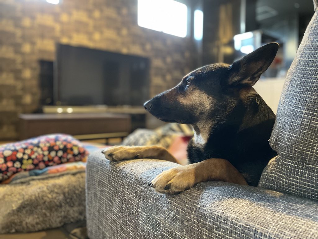 なんでやねんw「ひじ」置きを「ひざ」置きだと思ってる愛犬のソファの使い方がこちらw