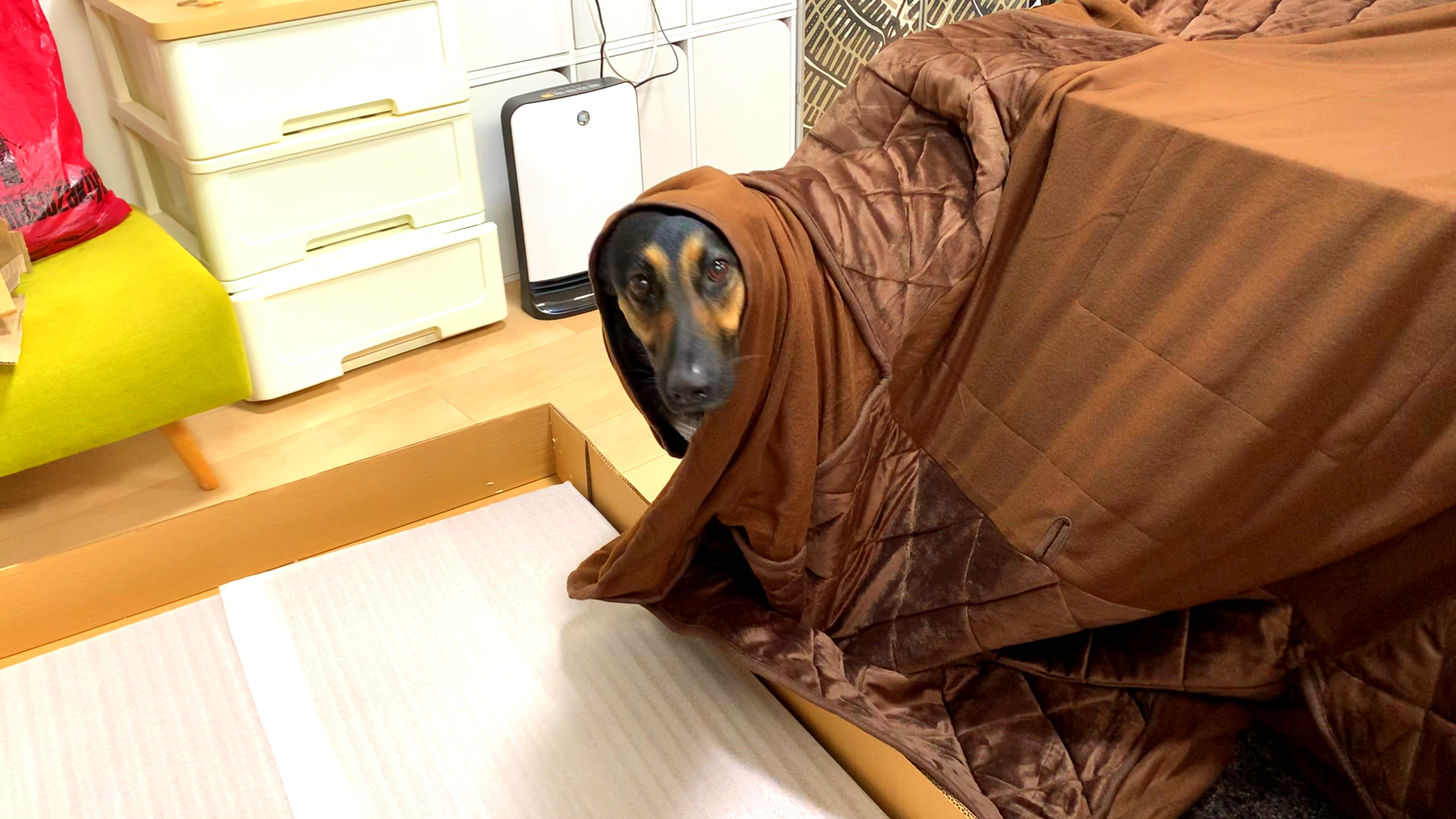 こんにちは。飼い主♀です。 デスクワークをしていると、ヒーターをつけていても足下が寒い・・・。 ということで、我が家は先日ハイタイプのコタツを購入しました! お、さっそく届いたようです。 「来たわよ~!おこたー!」 さっそく部屋まで運びましょ... -