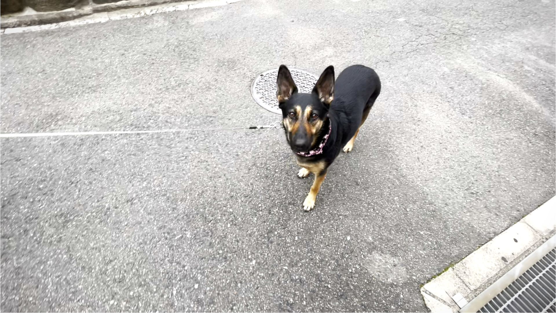 カメラ目線になってしまう上に近寄らずにはいられない犬
