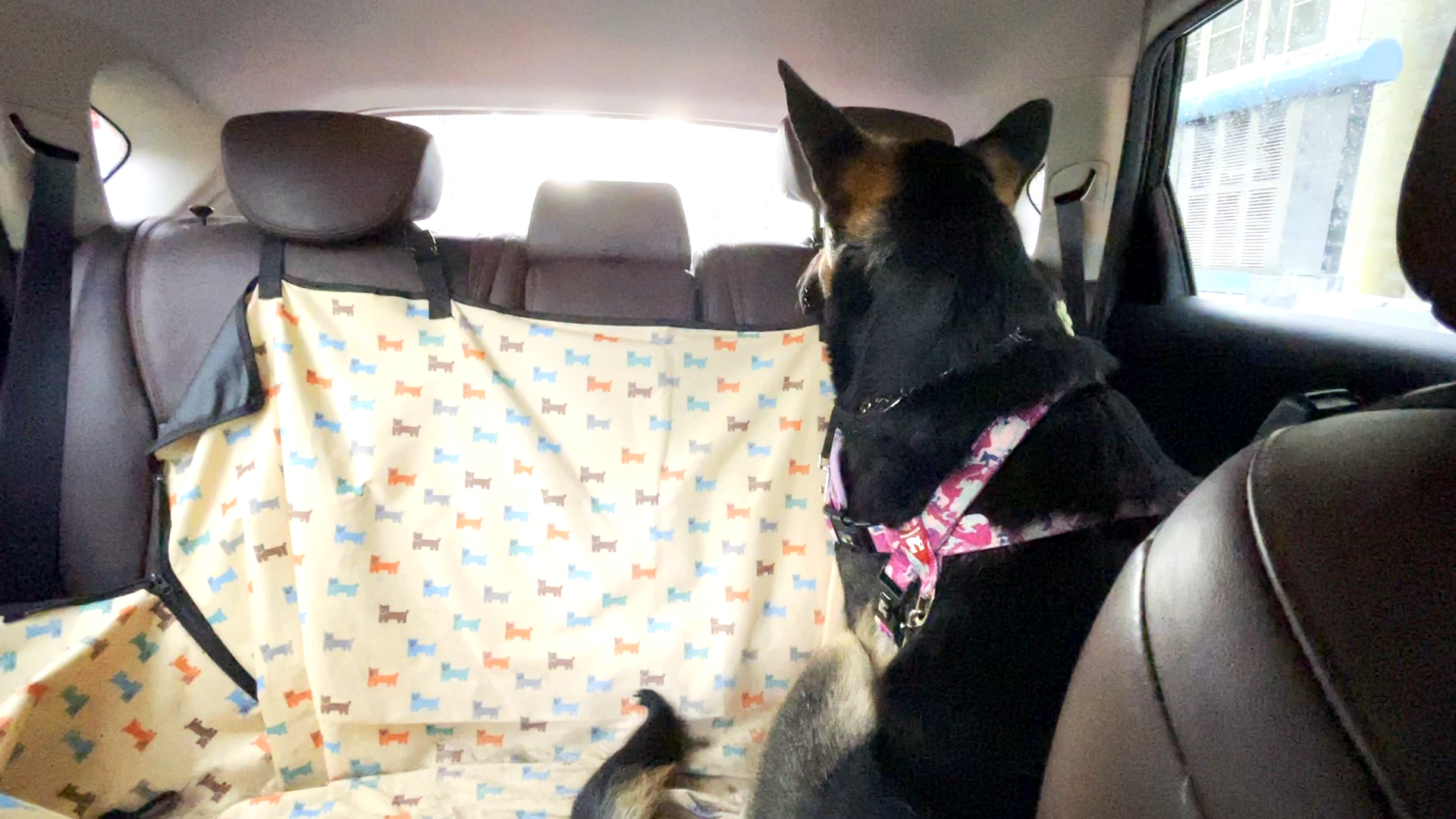 雨が降ってきたので散歩を中止したら愛犬が怒って車内で後ろ向きに座りました