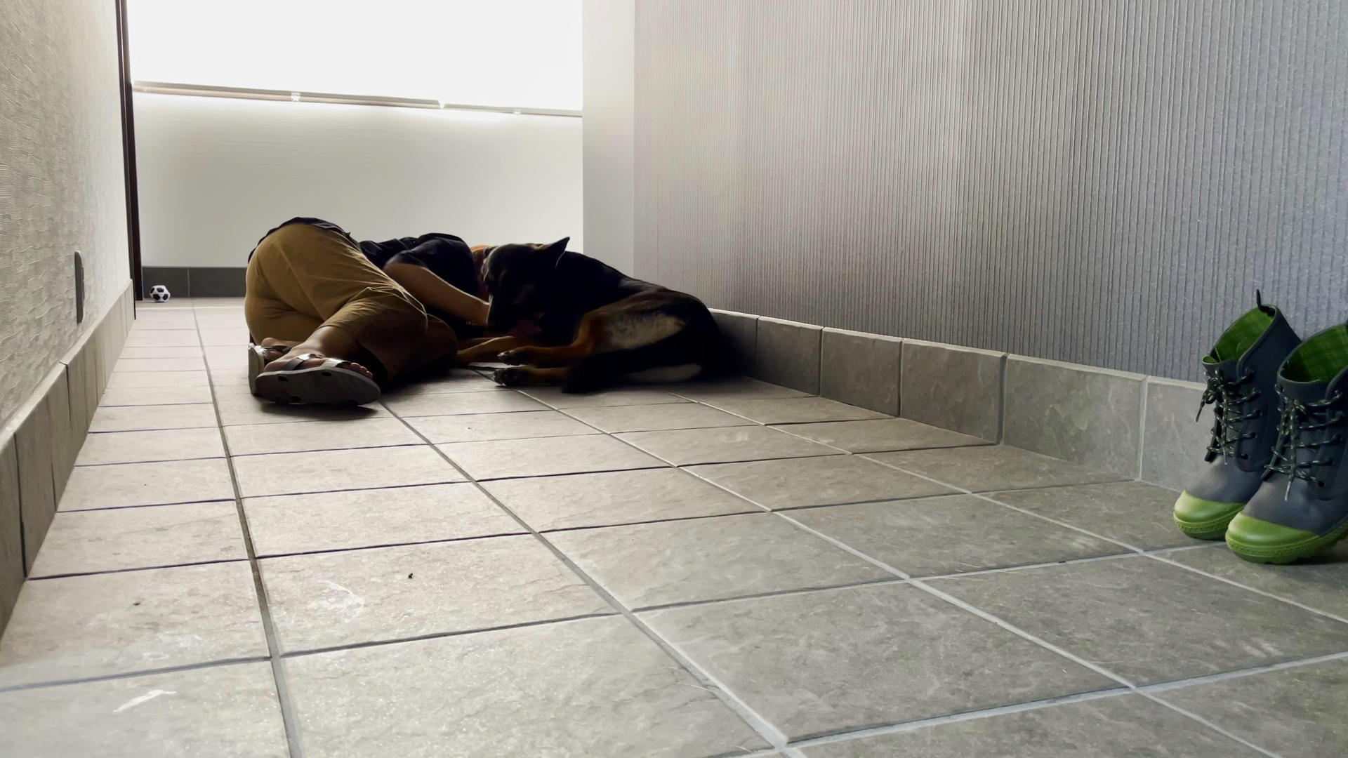 玄関で寝る愛犬、そんなにいいなら一緒に寝ようじゃありませんか