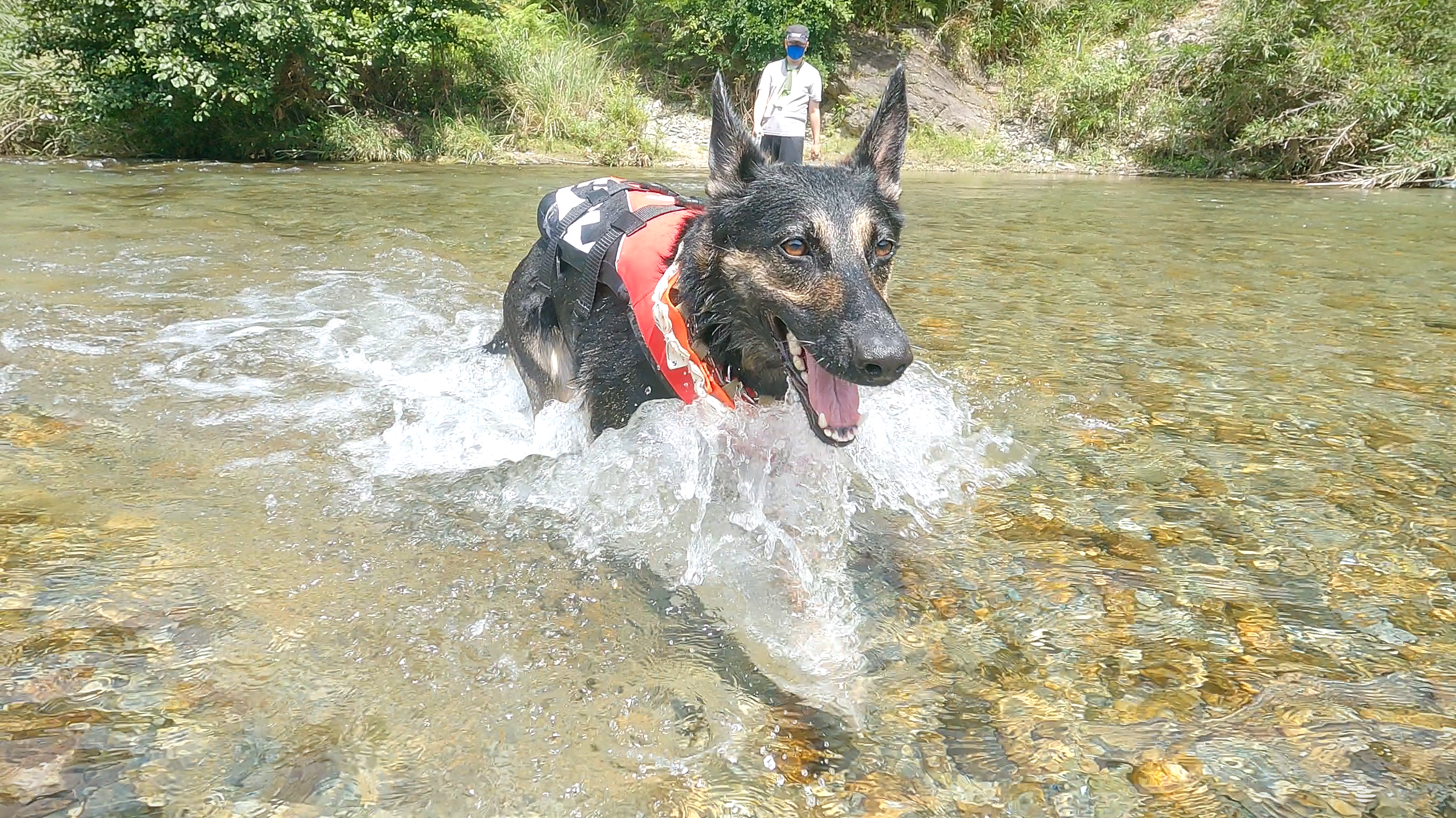 シェパード犬、今年初めての川遊びで大はしゃぎ!