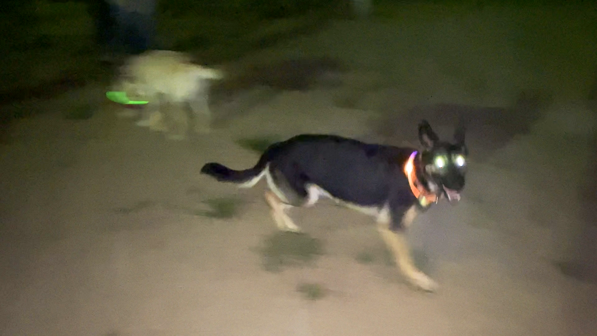 夜のドッグランへ行ってもやっぱりへなちょこシェパード犬でした