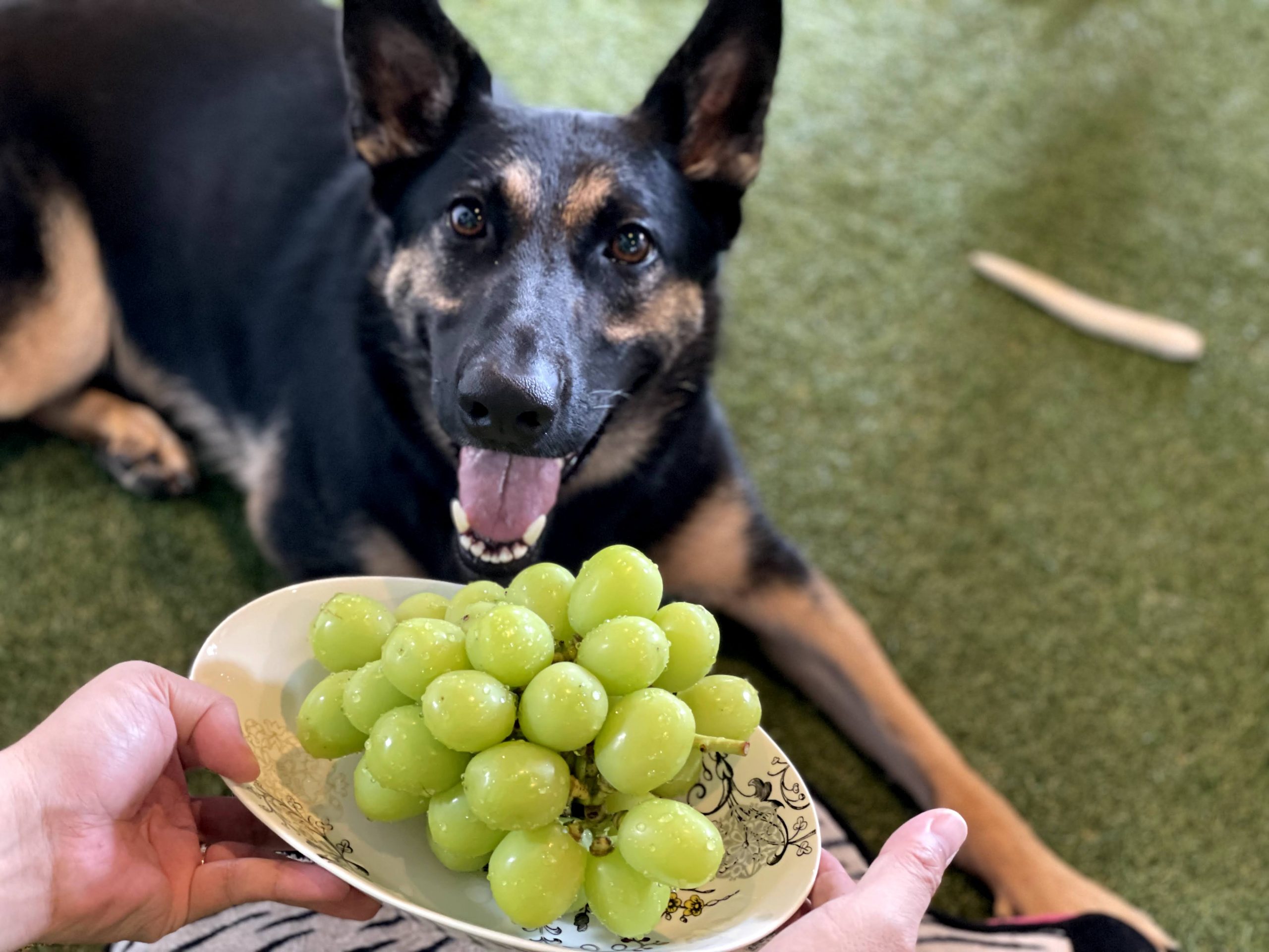 こんにちは。飼い主♀です。 先日、高校時代からの友人からシャインマスカットをいただきました。 「クンクン・・・」 毎年こうして贈ってくれるのですが・・・、 「マスカットだぁ~!」 残念ながら、維桜さんは食べられません。 犬がブドウを食べ...