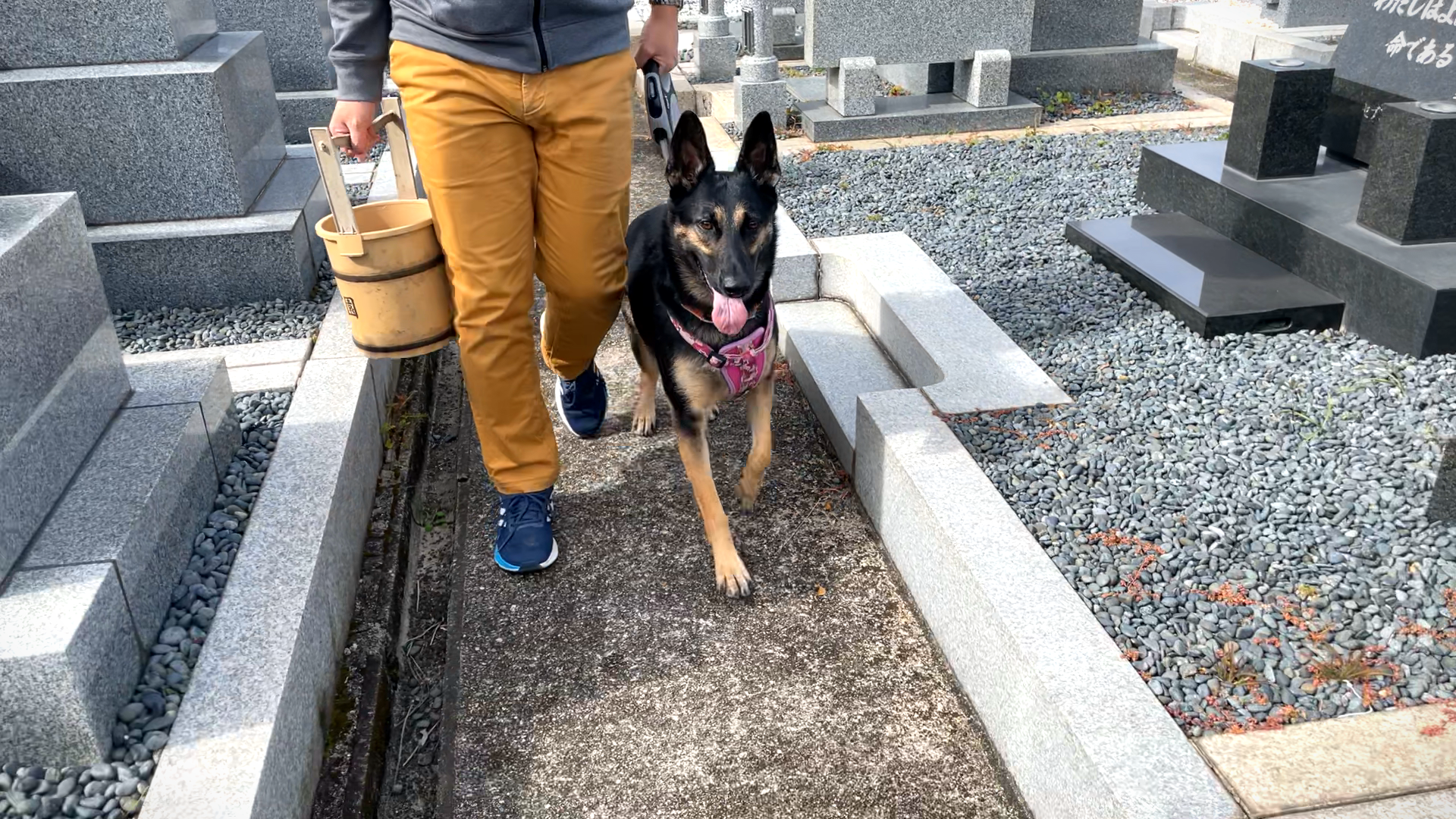シェパード犬、じいちゃんのお墓参りに行く
