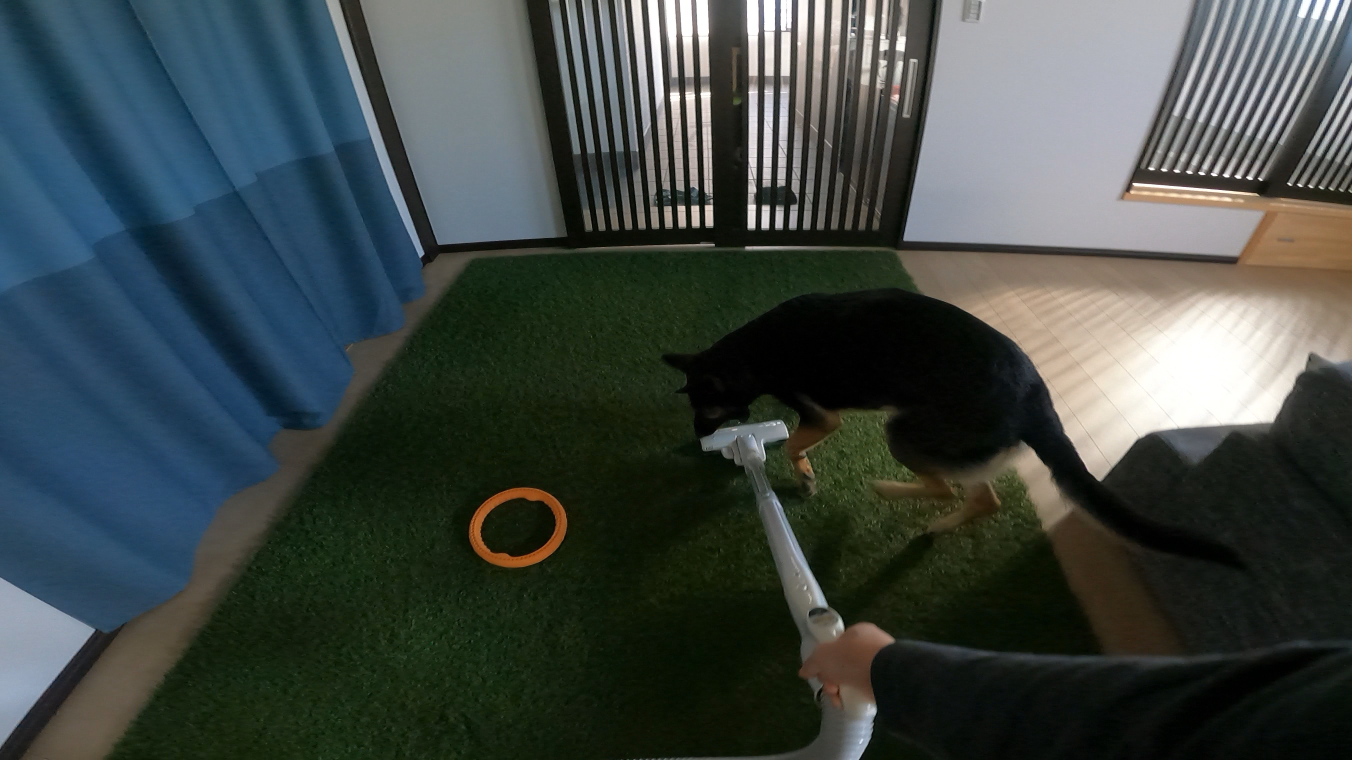 日曜日の朝は、掃除機VSシェパード・・・再び!!