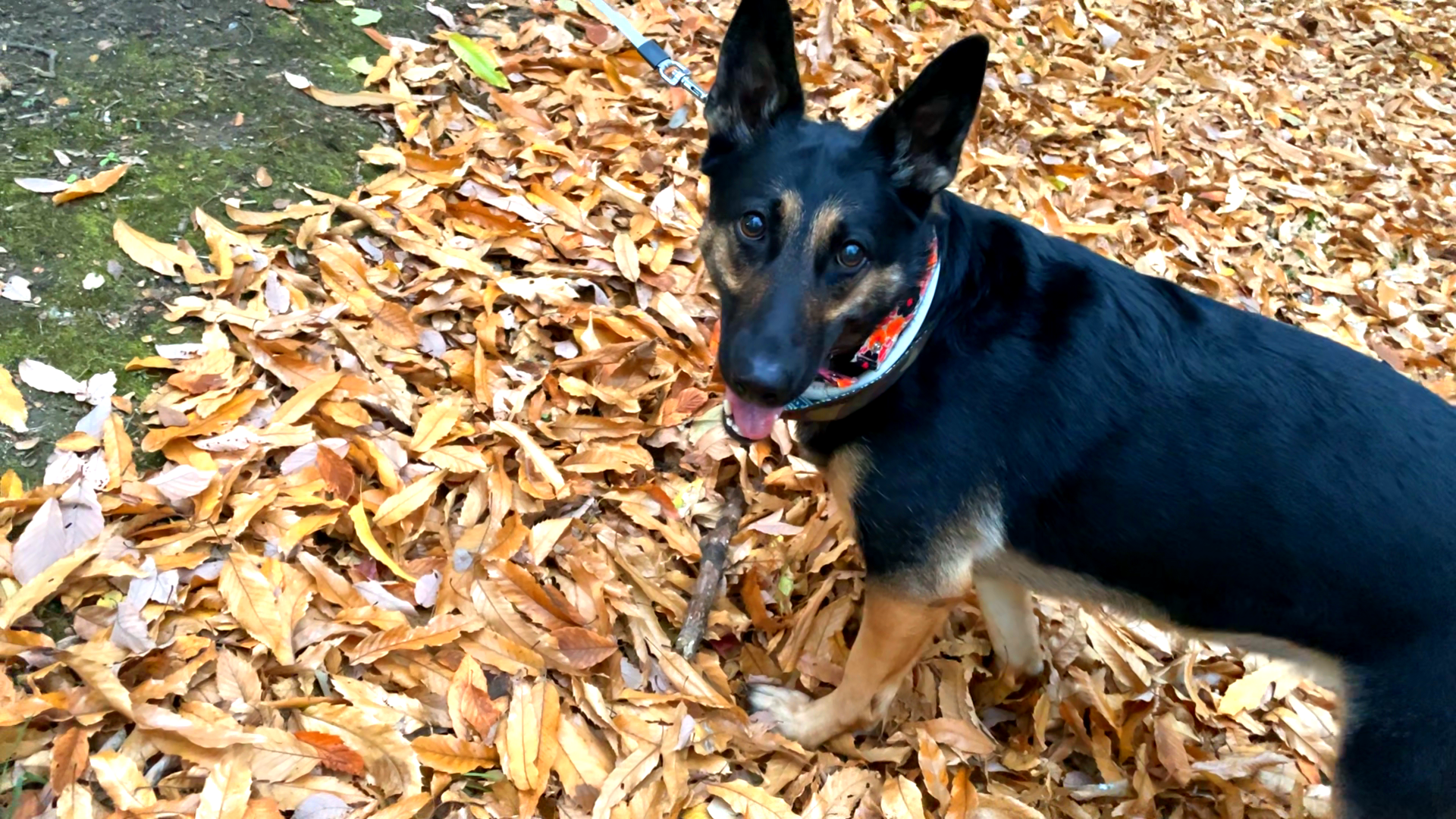落ち葉と小枝があると、いつもの散歩が超絶ワイルドになったシェパード犬・維桜