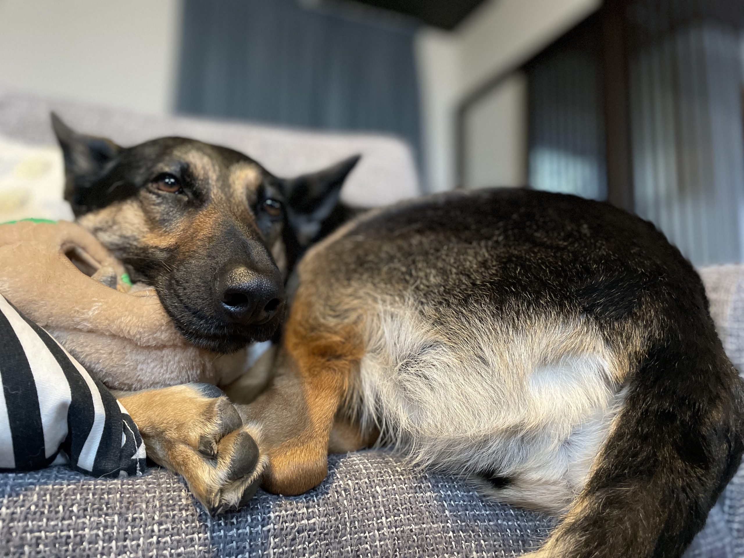 飼い主が遊んでくれない日曜日の朝のシェパード犬が思った以上にやさぐれてる・・・