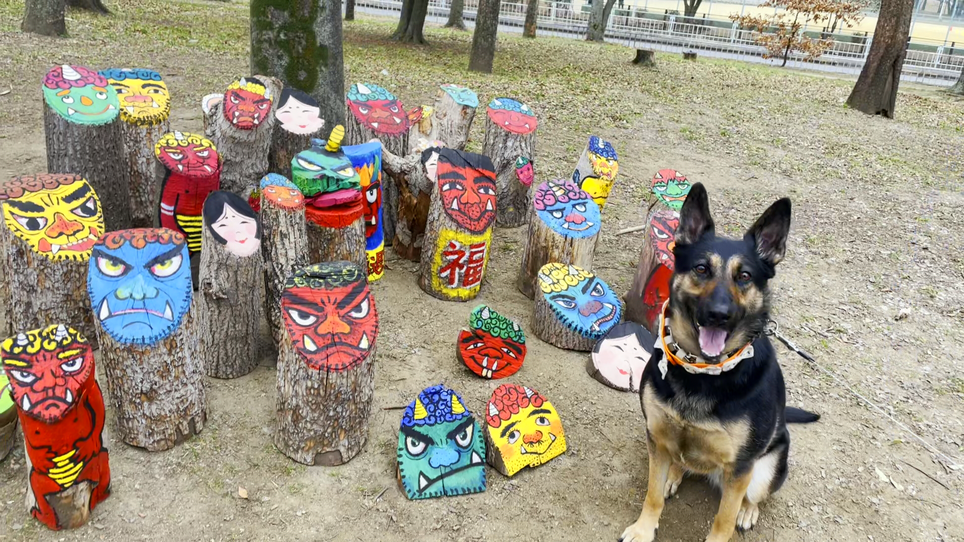 切り株シリーズの新作を見て、ゲスの勘繰りをしてしまう飼い主と口が半開きの愛犬