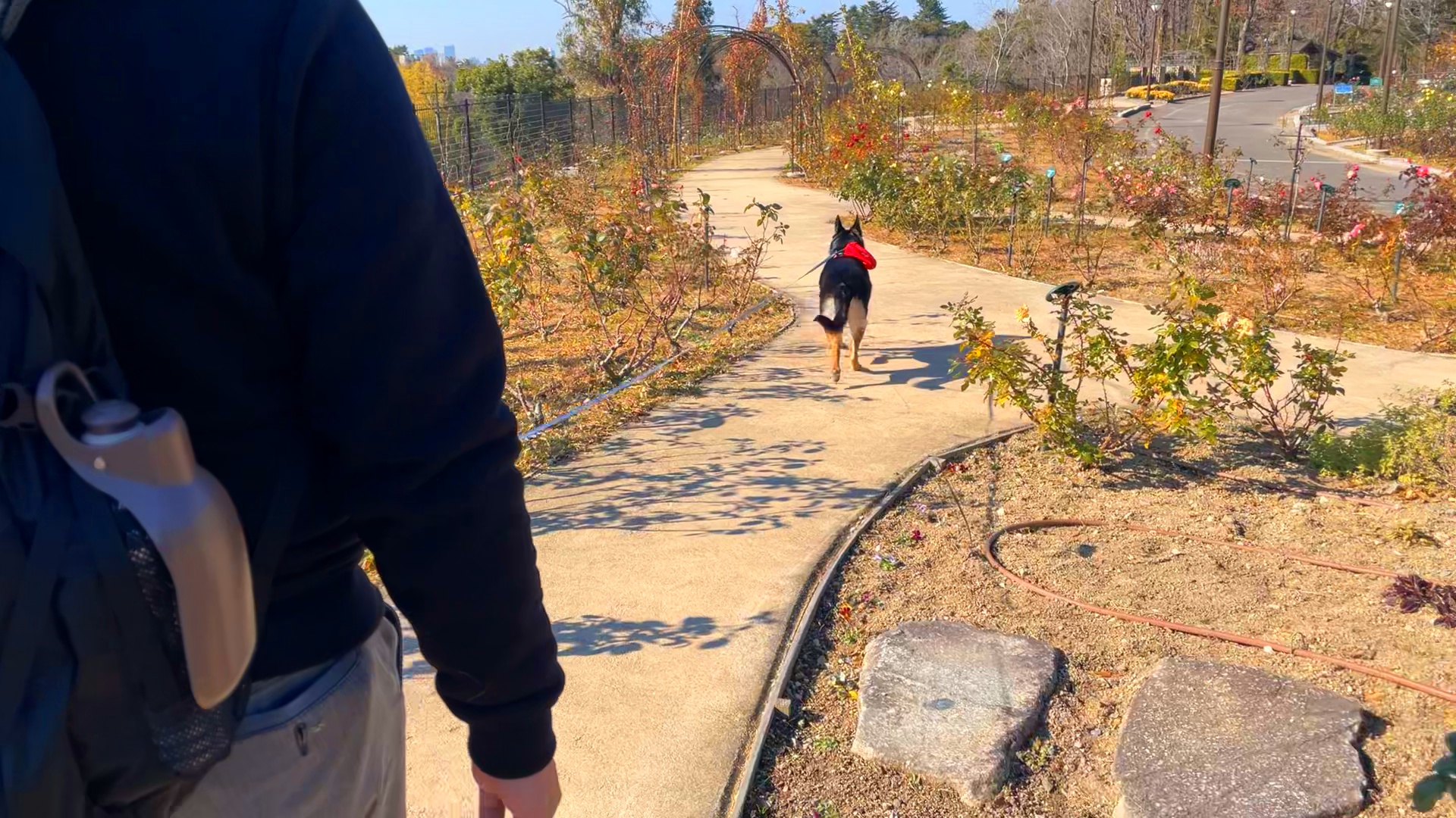 公園を散歩中、立派なバラ園を見つけて気分ウッキウキの愛犬と写真がド下手な飼い主の話