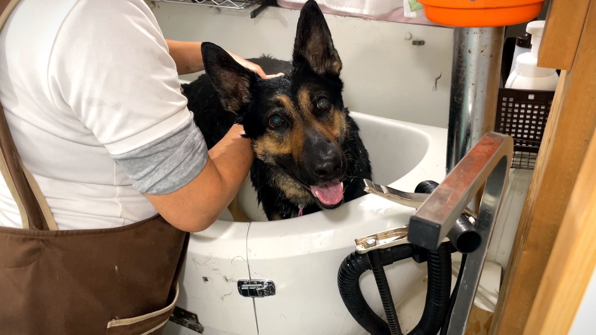 初めてわんちゃん専用出張シャンプーしてもらったシェパード犬、史上最高のサラモフになる!