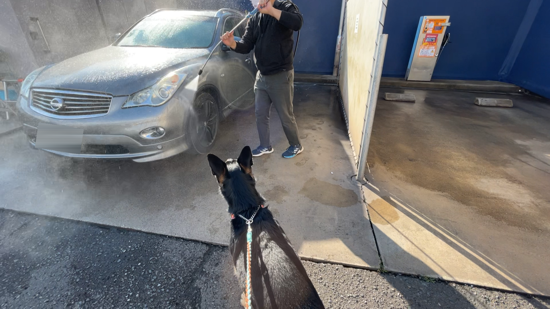 洗車しようと思ったら高圧洗浄機が壊れてたので、愛犬と一緒に洗車場へやってきました