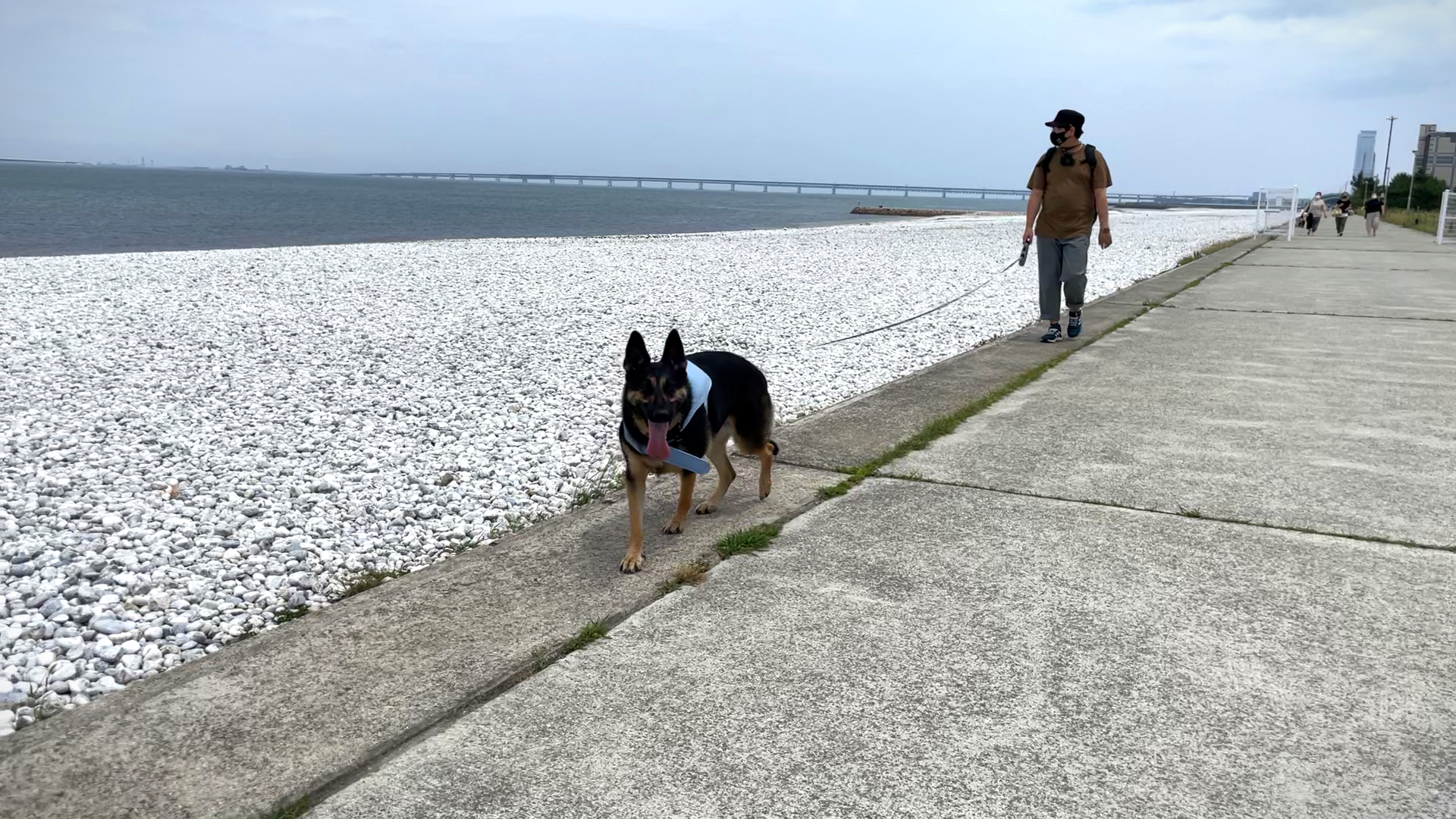 オヤジのアニメトークには全然興味がない愛犬、ビーチサイドのスタバで休憩する