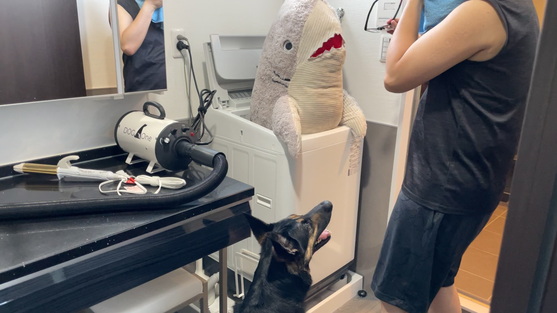 ぬいぐるみが巨大すぎて洗濯機に入らなかったので、愛犬と一緒に洗いました