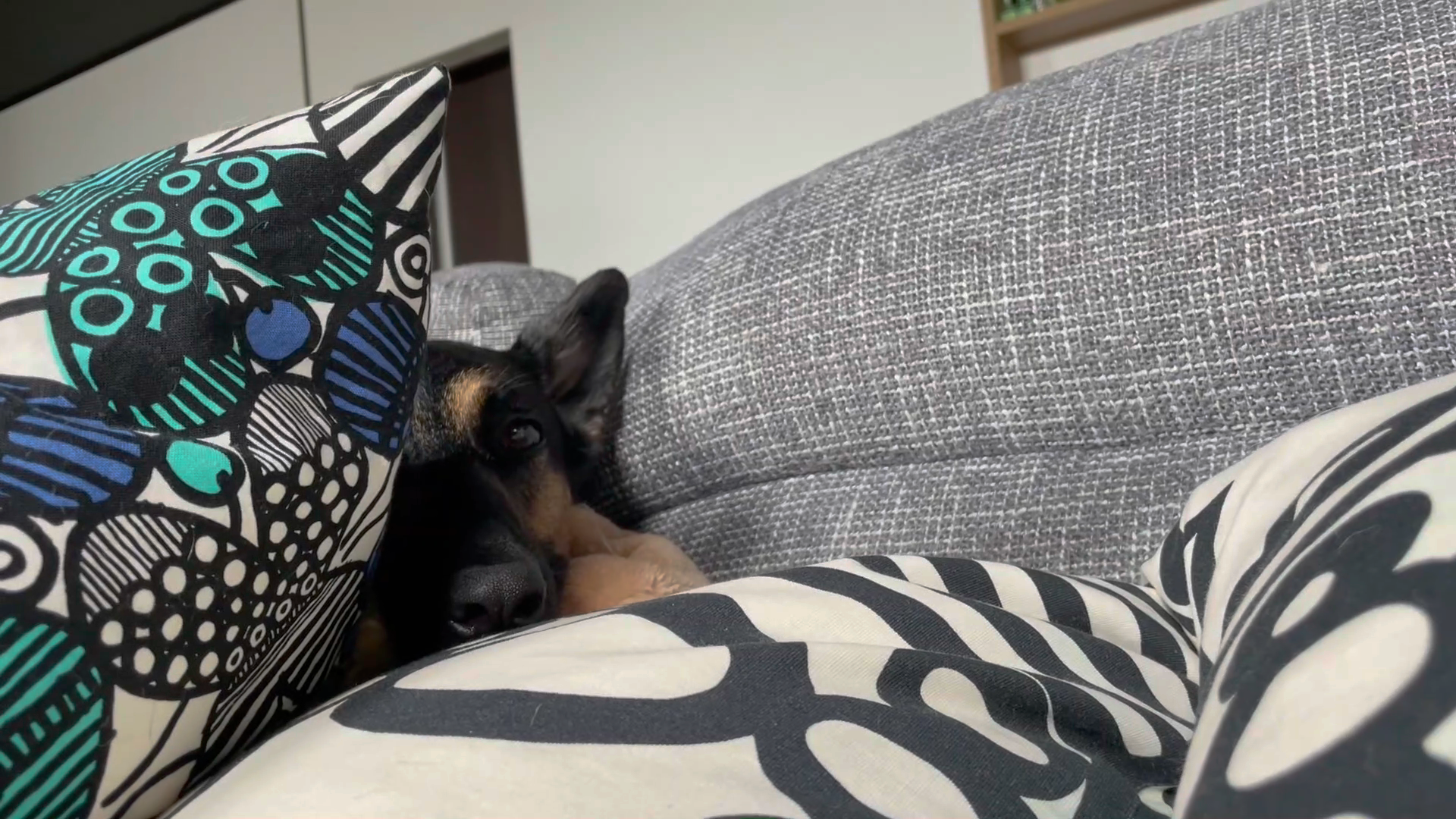 隣りで寝ている愛犬のシルエットがどう見ても、ちょっと焦げたかりんとう饅頭なんですが・・・w