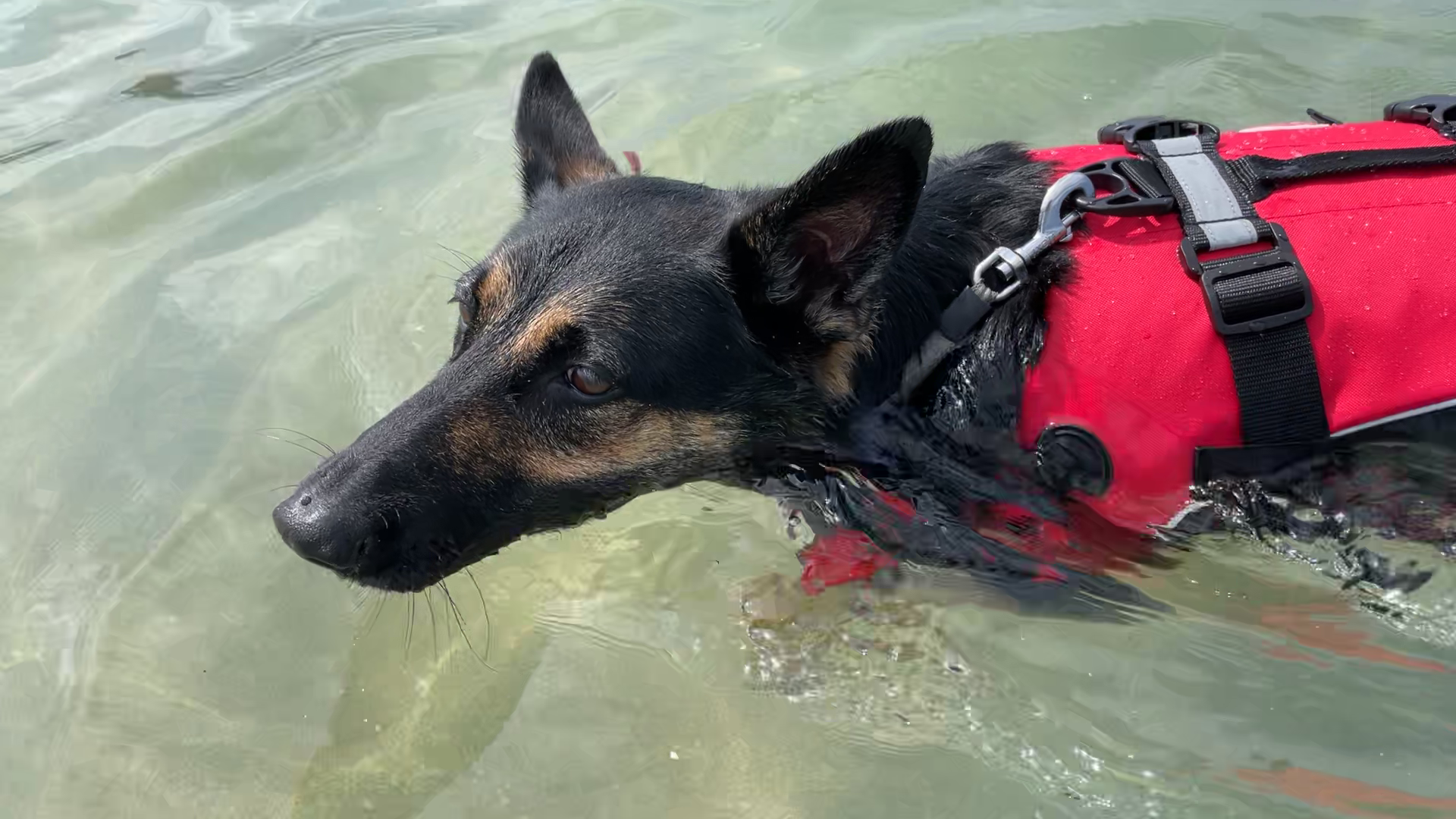 初めて海水浴に来てみたら、すっかり海にハマってしまったジャーマンシェパード
