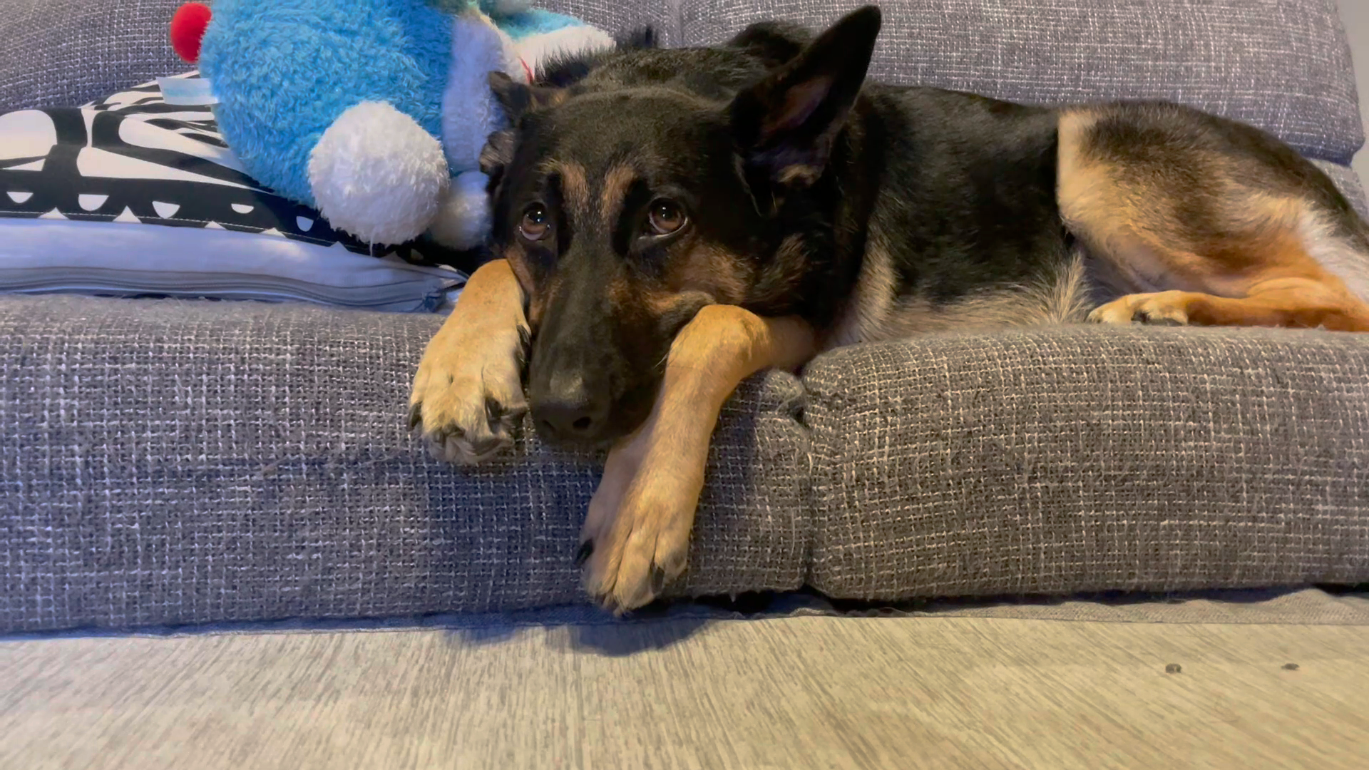 愛犬とオヤジが同じ格好して仲良く並んで寝転んでたので写真に撮ったら、絶賛ツンデレキャンペーンだったw