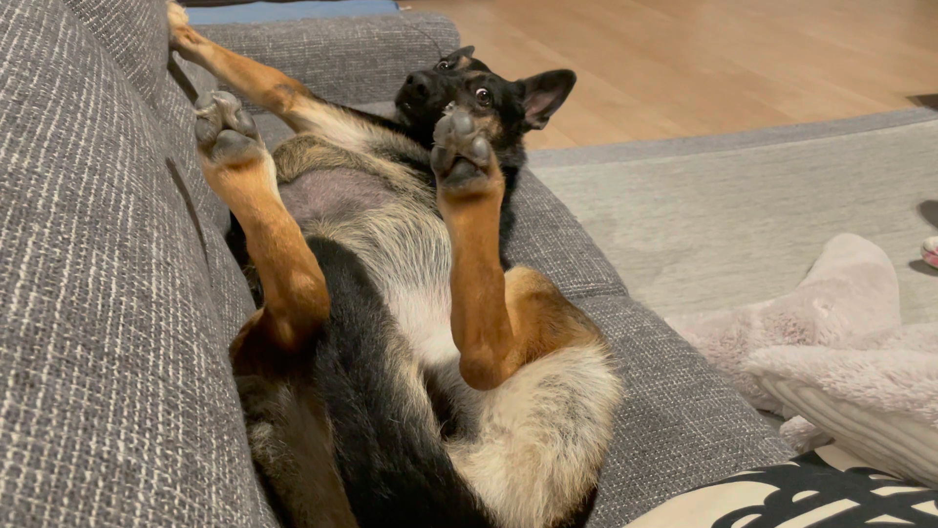 休日だからといって、ジャーマンシェパードの飼い主はおちおちくつろいでいられないみたいです・・・