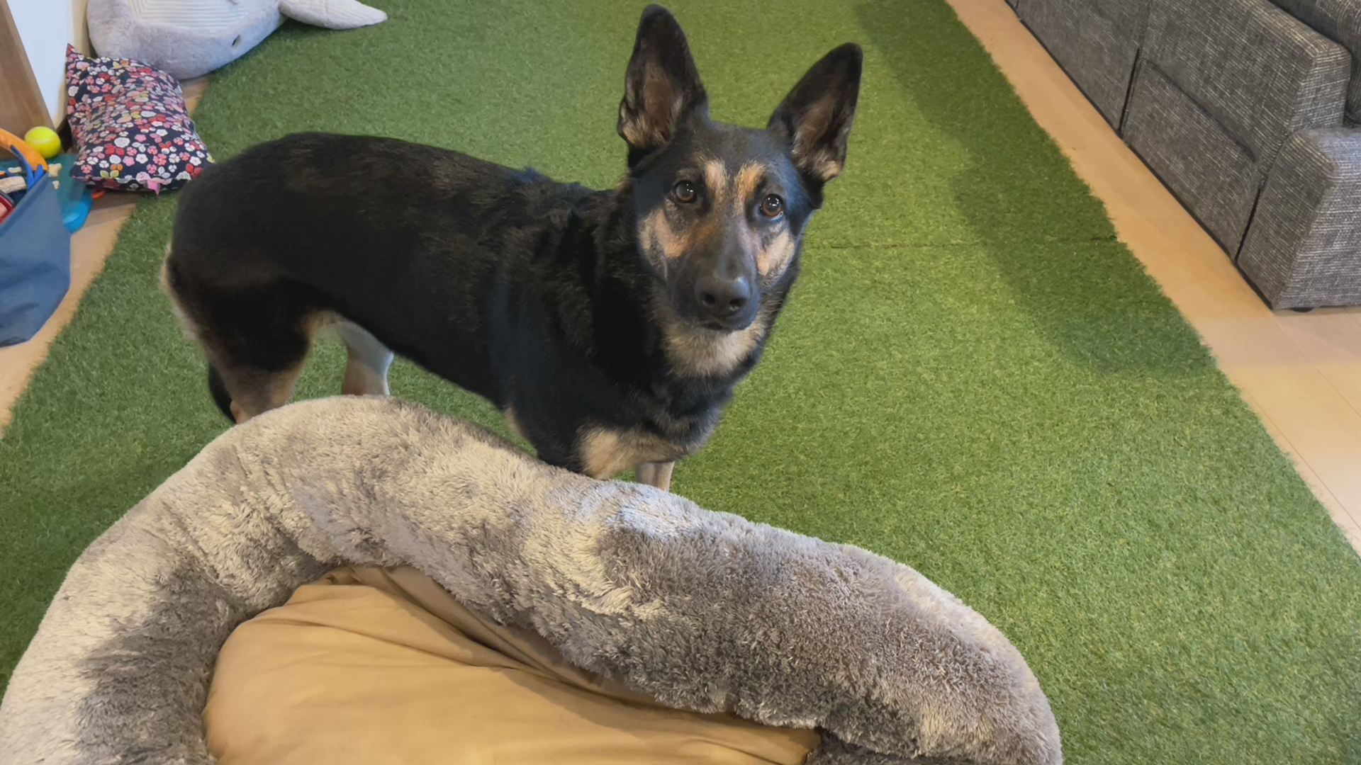 食後のオヤツはモフモフベッドの上で食べたい愛犬。ベッドを隠してオヤツを見せたらどうする・・・?
