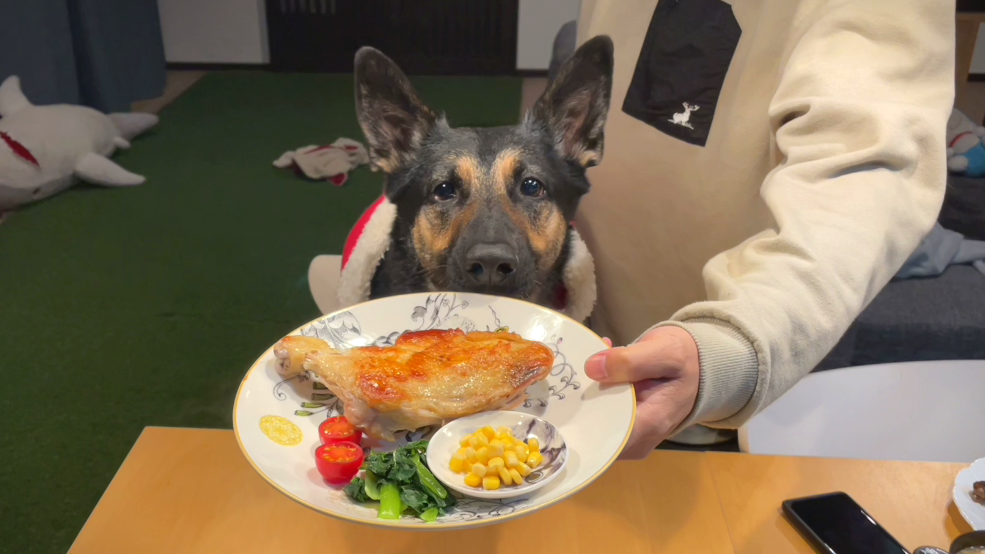 【クリスマス】愛犬に骨付き肉を出したら、食べ方が飼い主より上品でした・・・【ディナー】