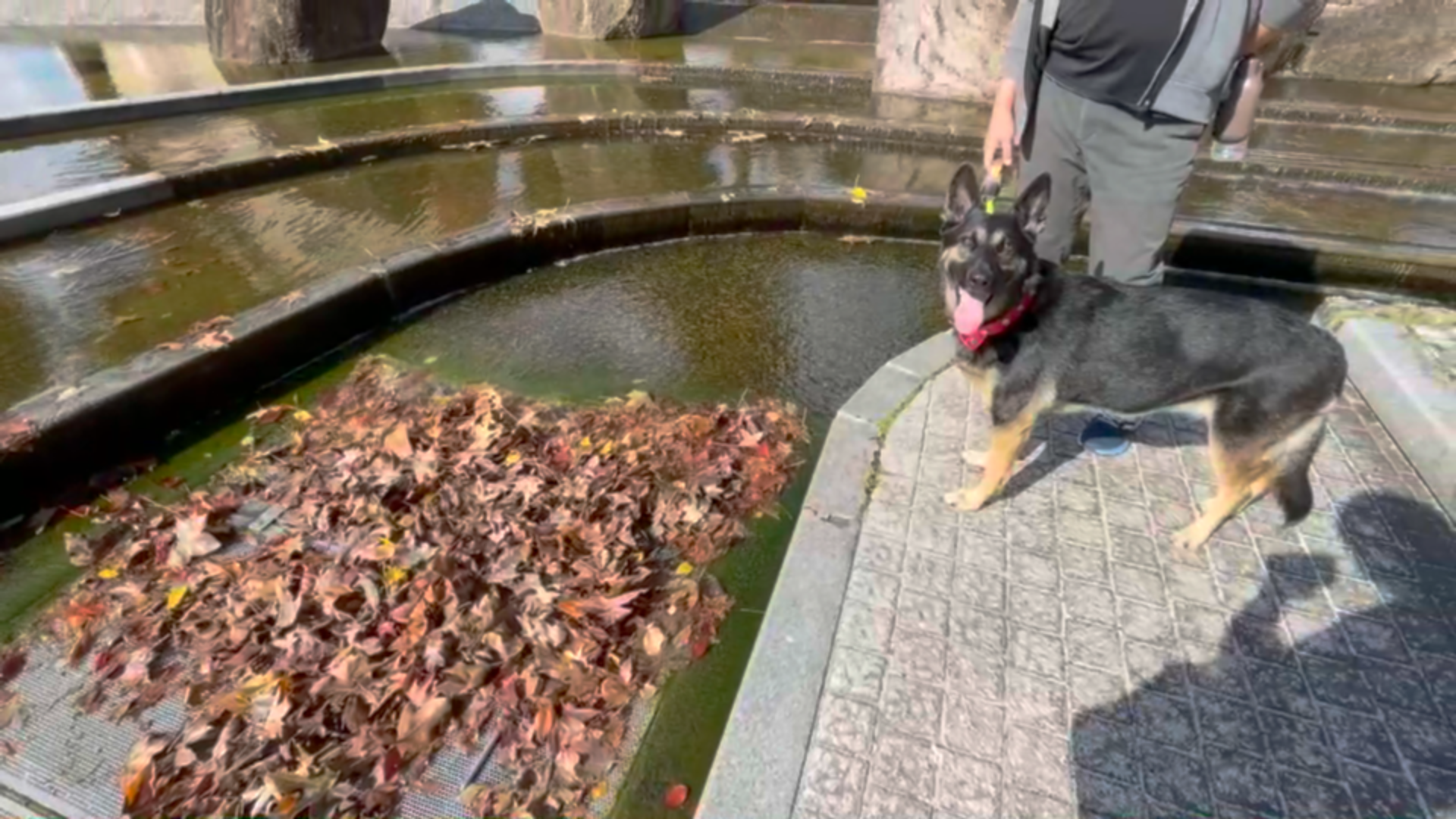 愛犬がオヤジのカメラを避けて池ドボンした公園にもう一度やってきました。今度も入るの・・・か?
