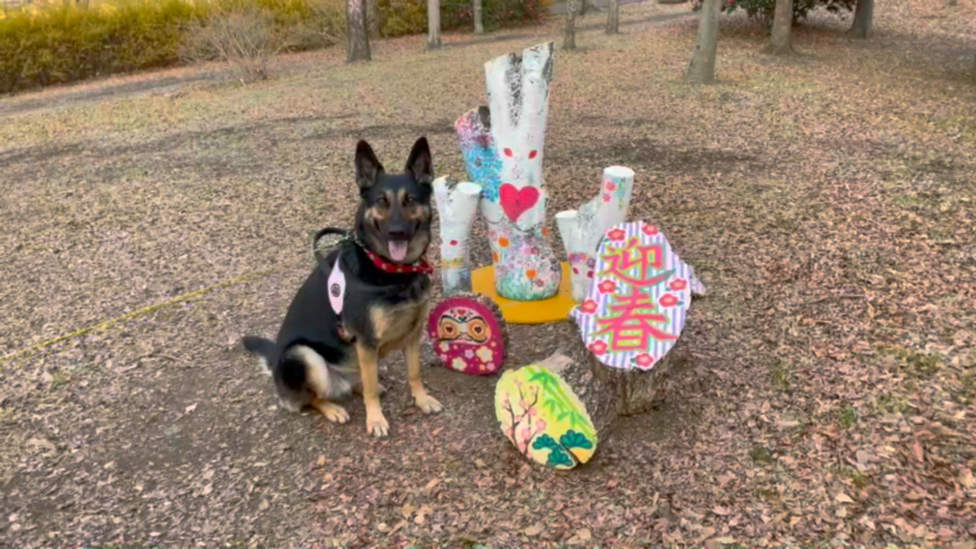 元旦から公園を散歩中に犬のウンティを発見した2023年、今年もよろしくお願いいたします!