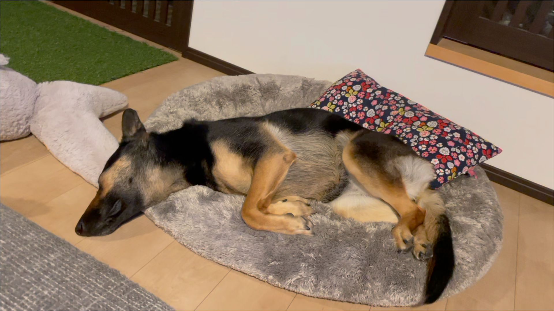 先日、愛犬が寝落ちしてました。でも、寝落ちは寝落ちでも(頭が)落ちてる方の寝落ちですw