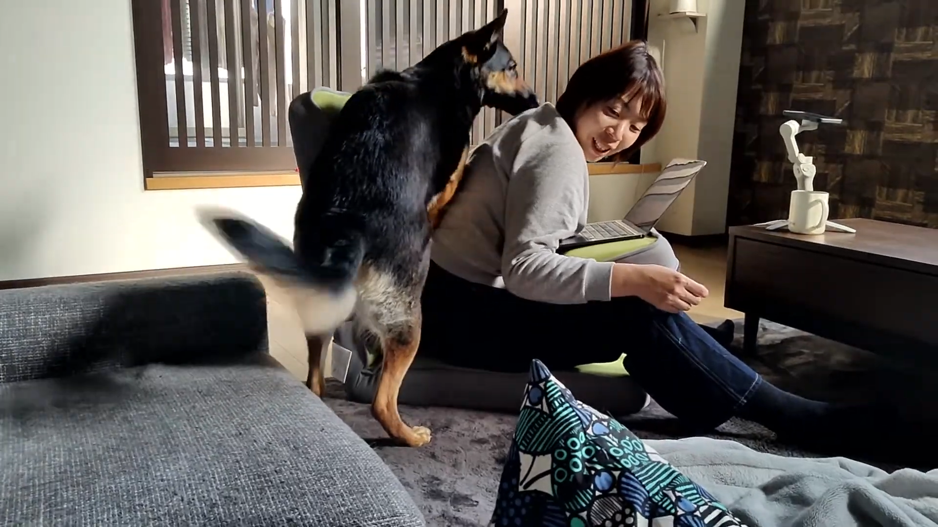 愛犬がヤキモチ!? ママに座イスをプレゼントしたら、愛犬の嫉妬心が爆発しましたw