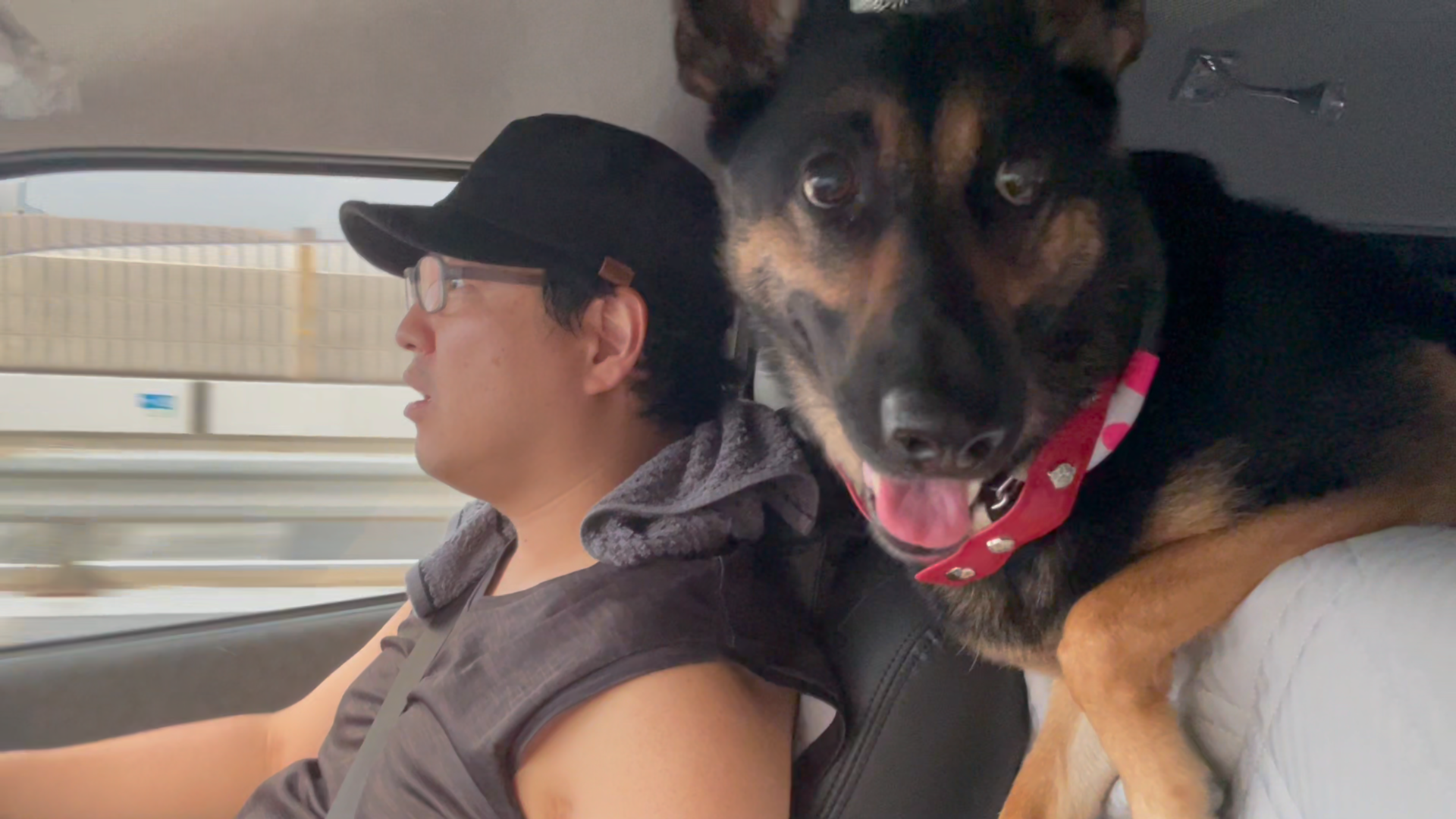 こんにちは。飼い主♀です。 先日、お昼ご飯を車内で食べた後のことです。 「ちゃ〜っす」 維桜さん、お腹もいっぱいになって、ごきげんに座っています。 ・・・が、なんと! この日の最高気温は31℃! 暑っつぅ・・・ オヤジと...