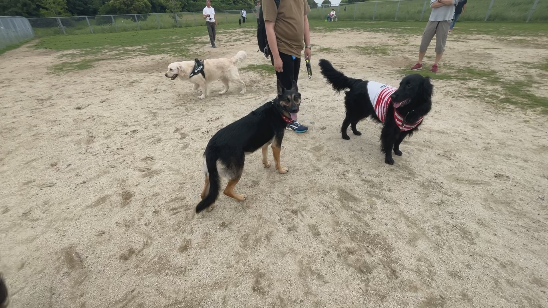 こんにちは。飼い主♀です。 今日はドッグランへやってきました! 「こんちゃー!大阪から来ました飼い犬♀でーす」 暑いので朝の9時過ぎにお邪魔しましたが、すでにたくさんワンちゃんが来ています。 大型犬は暑いの、弱いもんね〜! 「エヘヘ〜アハ...