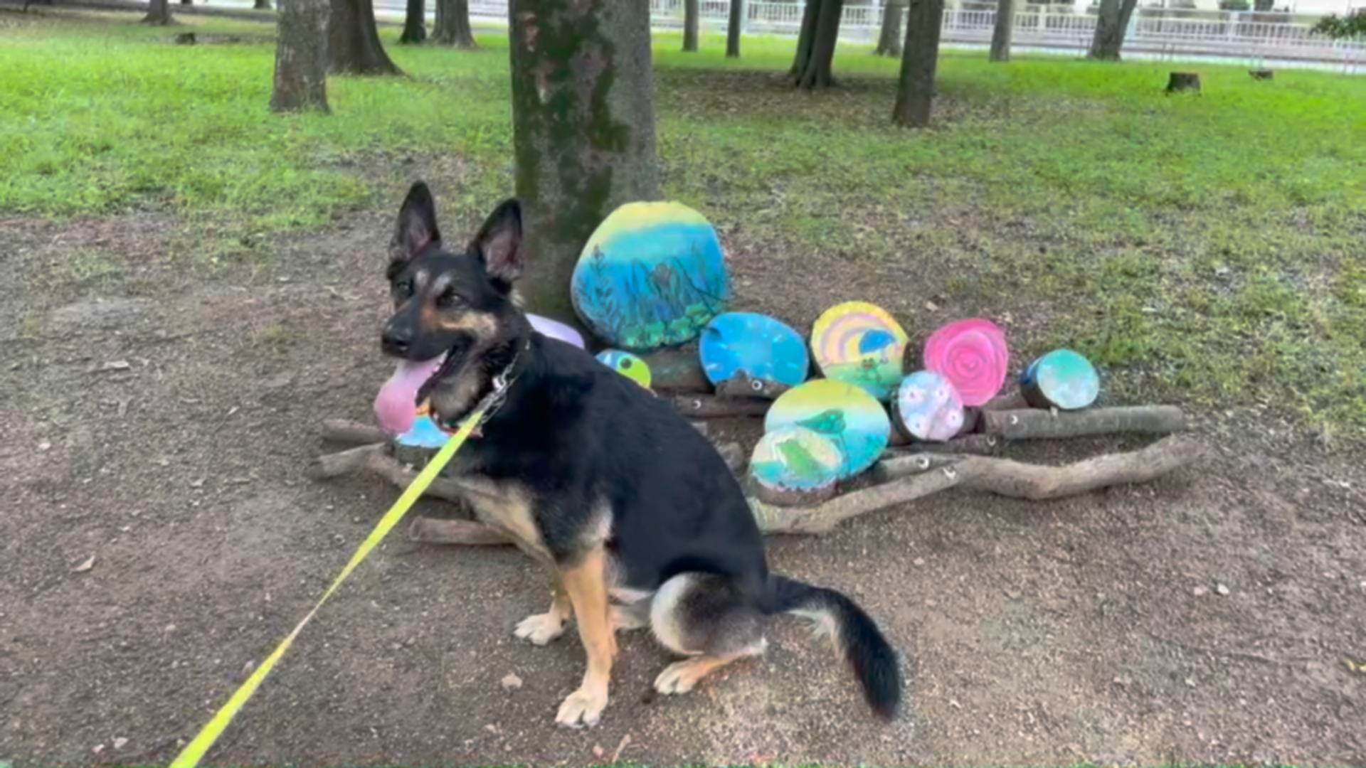 愛犬の舌がベロ〜ン!散歩はそろそろ涼しい時間帯に行きましょう、な時期の切り株シリーズがこちら!