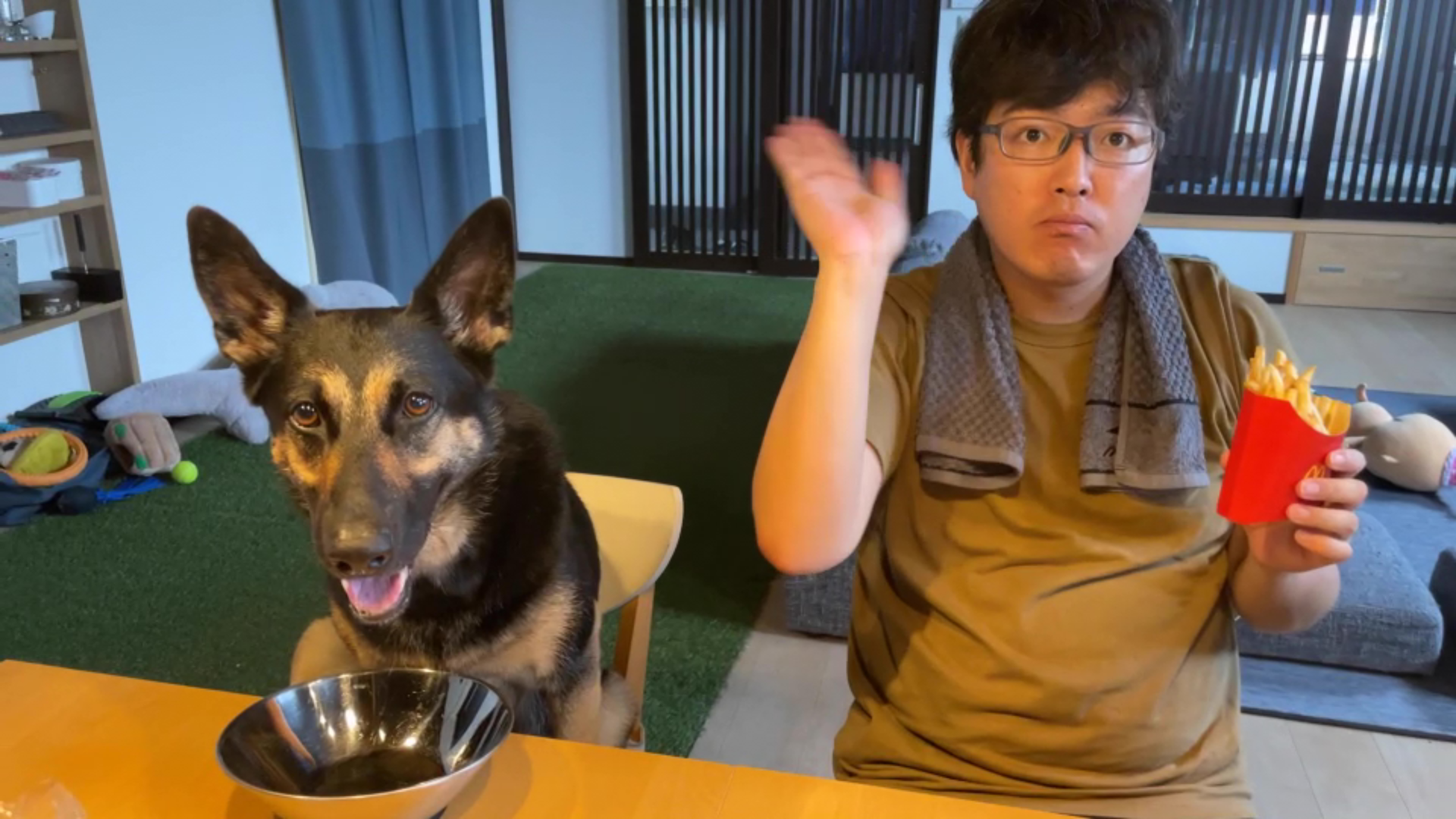 こんにちは。飼い主♀です。 今日のお昼ご飯は・・・って、あーっ! 「ヤッホー!」 オヤジ、フライング! フライング〜! 「あーっ! い〜けないんだ、いけないんだ〜!」 ・・・ということで、改めまして、 「こんにちは〜!」 今日のお...