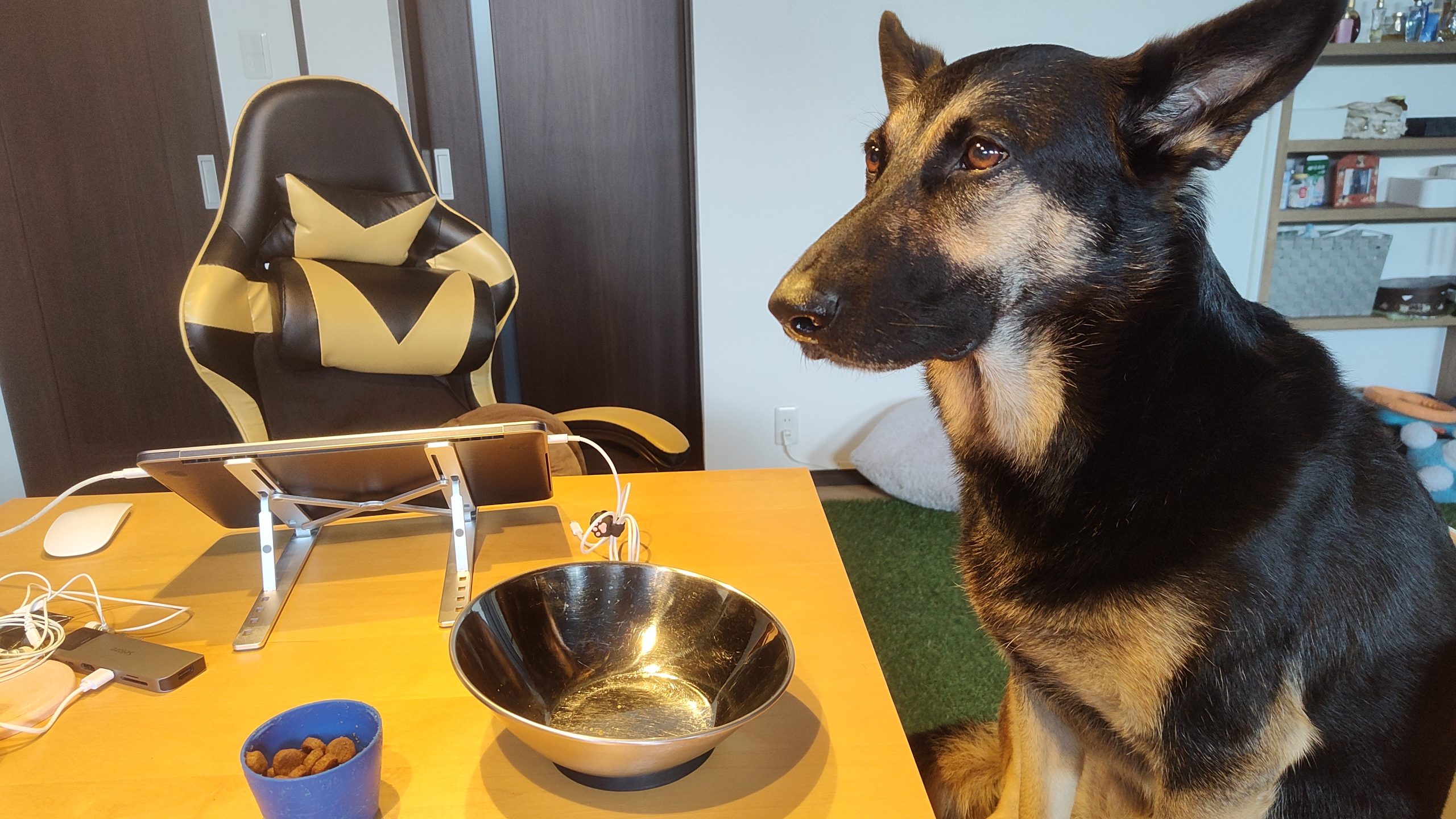 オヤジが二度寝したせいで朝ご飯の時間が遅くなっても、ちゅーるがあれば機嫌を直してくれる愛犬です