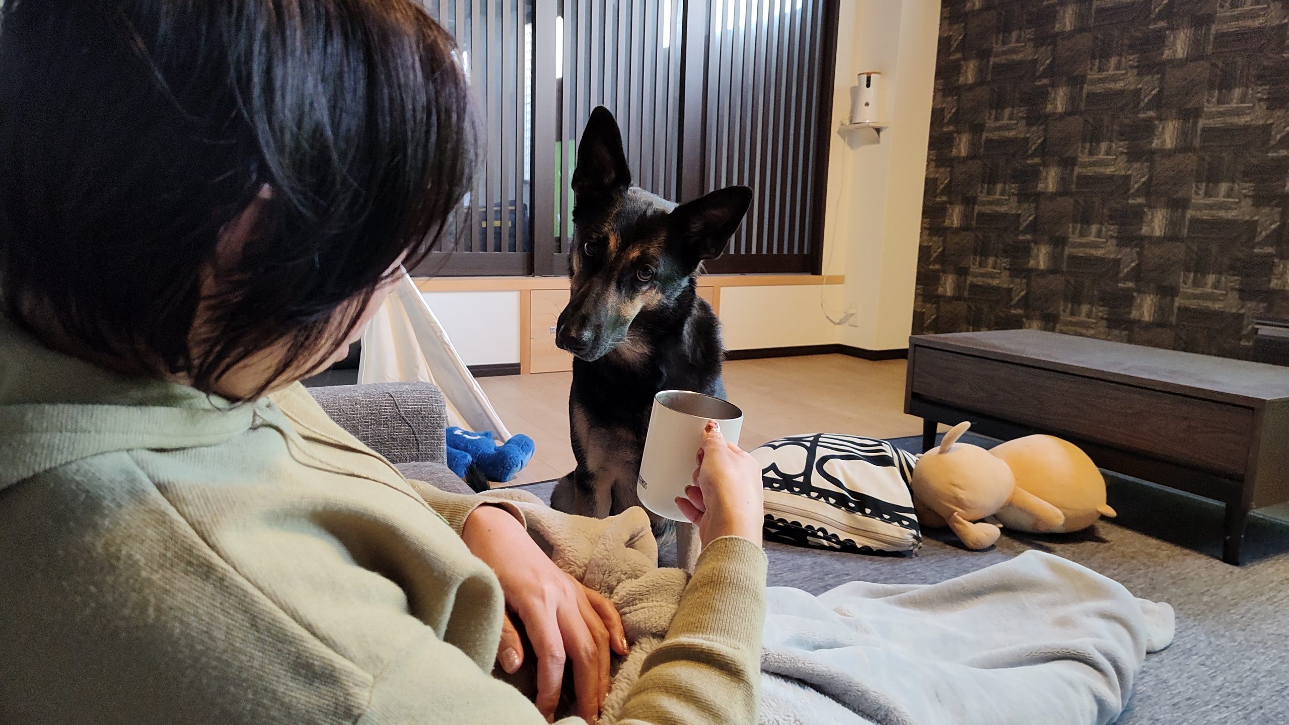ママ様が飲んでるコーヒーが欲しい愛犬、ちょうだいのお手とおかわり連発して粘り勝ち!