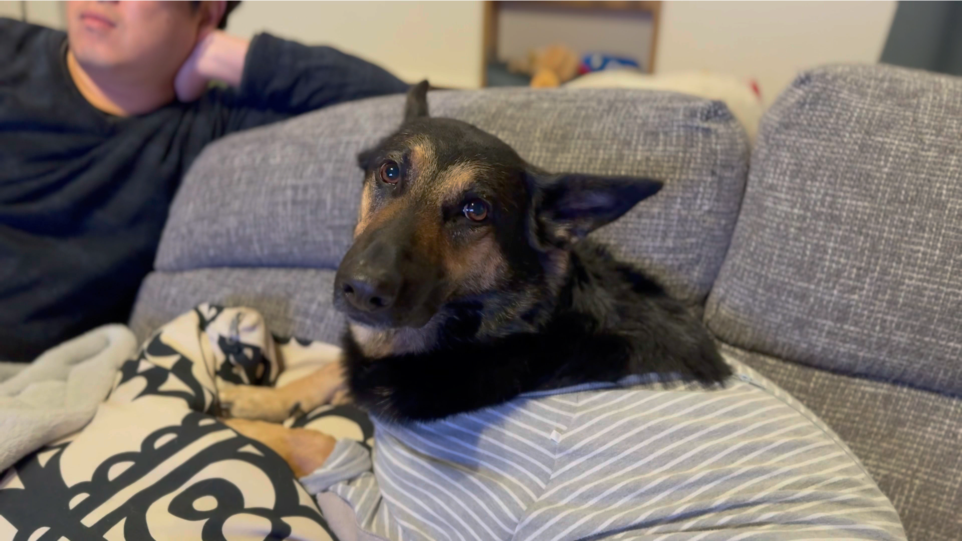 ママとオヤジで洗濯物を干す時の態度が違いすぎるシェパード犬がこちらですw