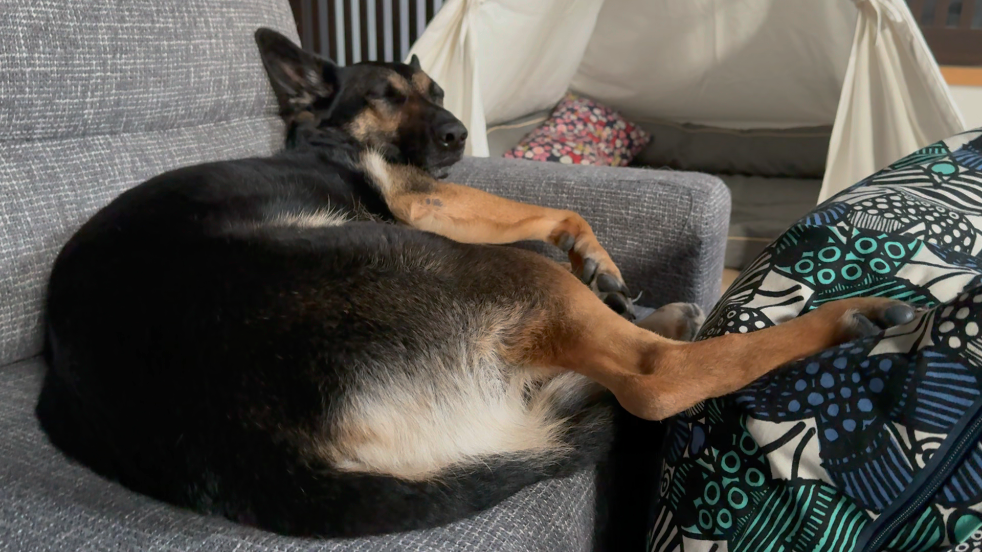 愛犬がソファで気持ちよさそうに寝ていました。その足をよーく見ると・・・えーっ!全然女子に見えない!?