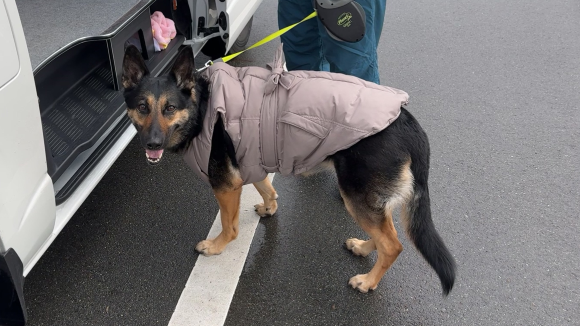 寒がりの愛犬のためにオババがダウンジャケットを作ってくれました!