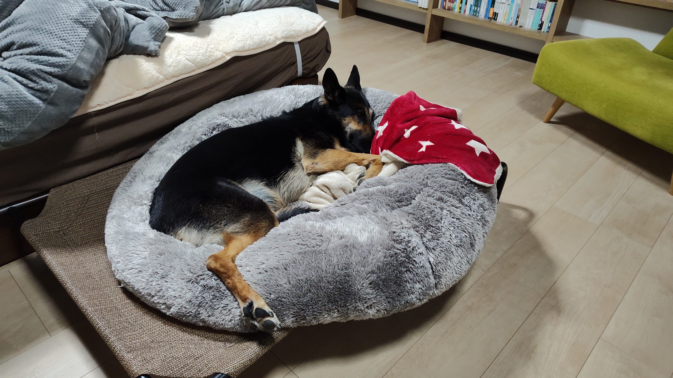 冬はひとりでこっそり寝室へ寝に行く愛犬。そっと様子を見に行くと・・・やっぱりそこで寝るんかいw