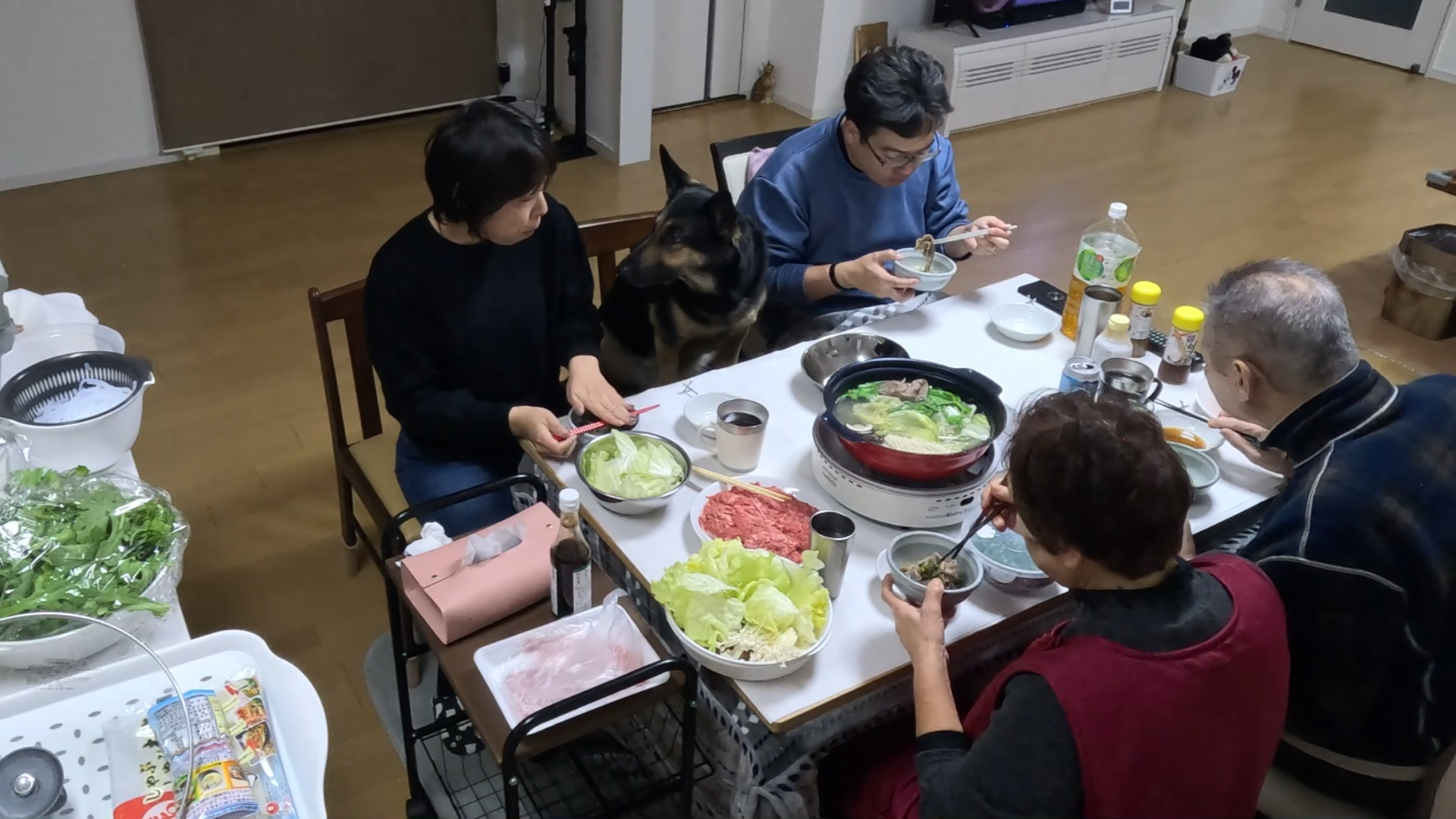 愛犬も一緒に実家でしゃぶしゃぶしたら、肉の奪い合いになりましたw