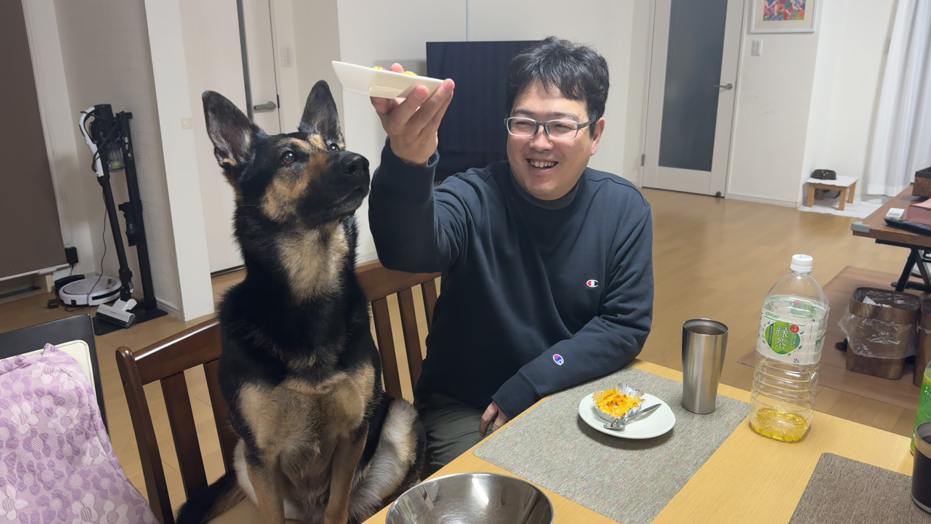愛犬と一緒に買いに行った超デカいさつまいもで「いもパ」したら、瞬殺でしたw