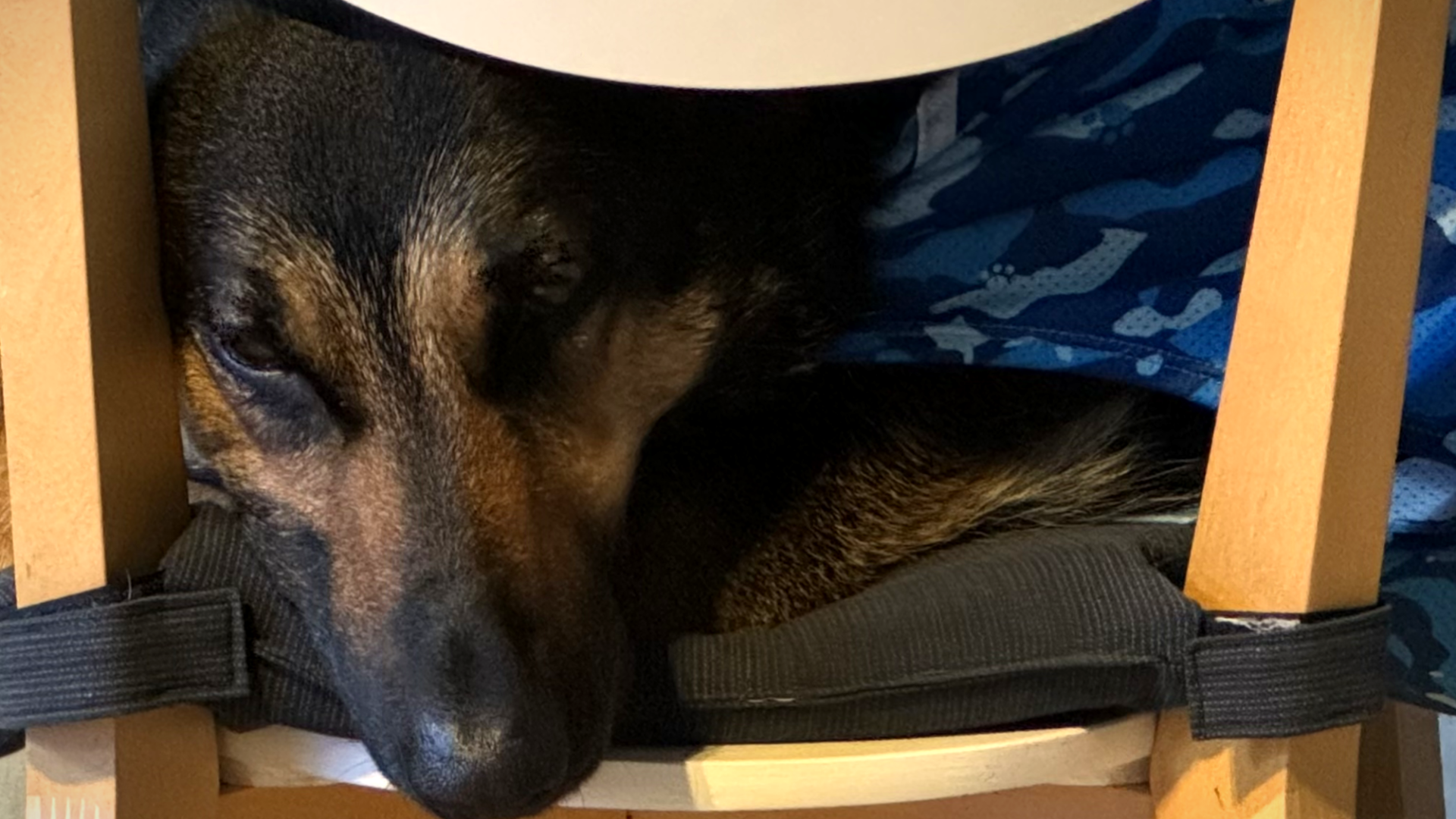 爆睡中のシェパード犬、爆音の寝言を言いながら一体どんな夢を見てるんでしょうか・・・??