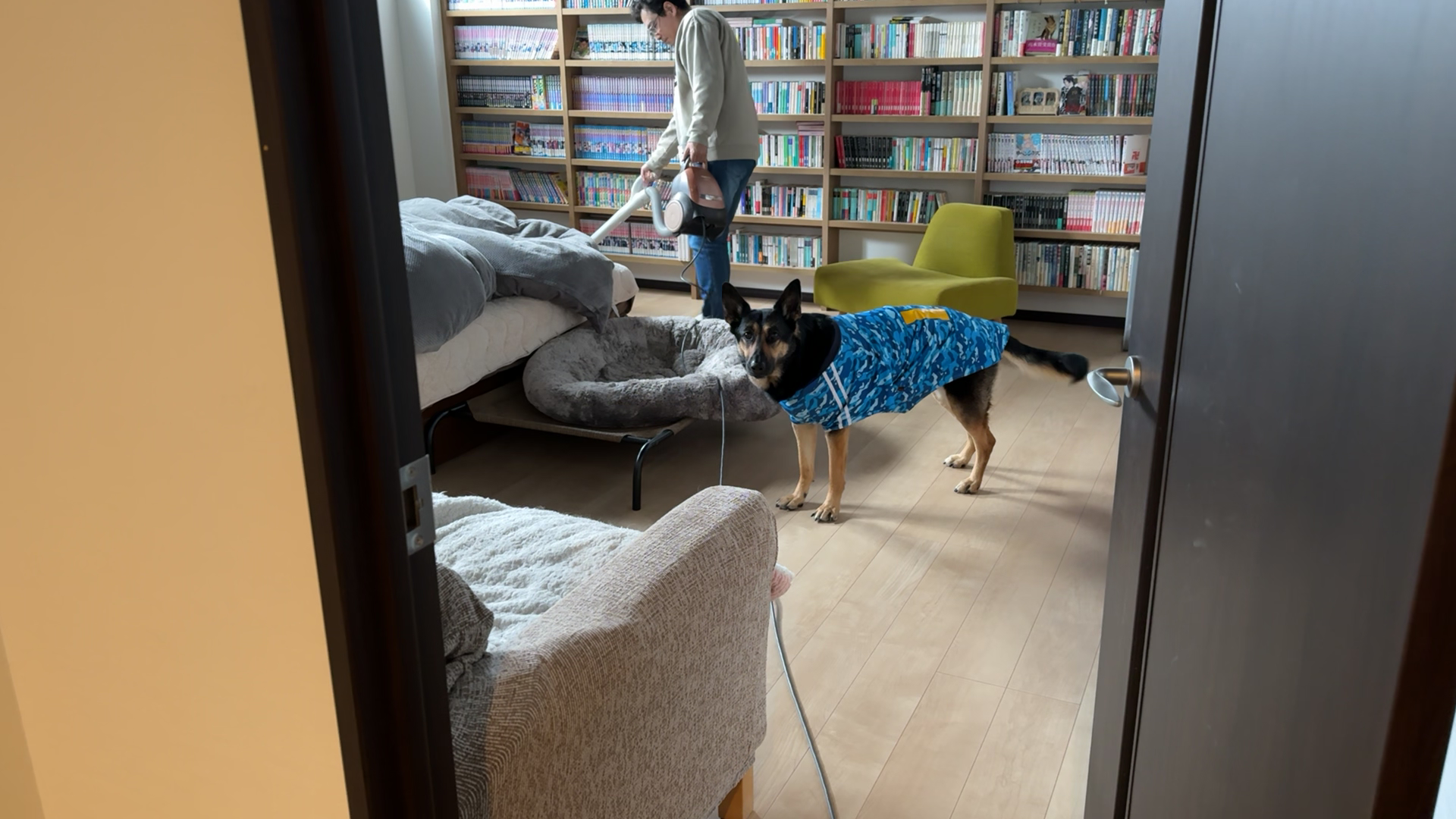 オヤジの掃除中、カメラがある時とない時で態度が全然違う愛犬がこちらですw