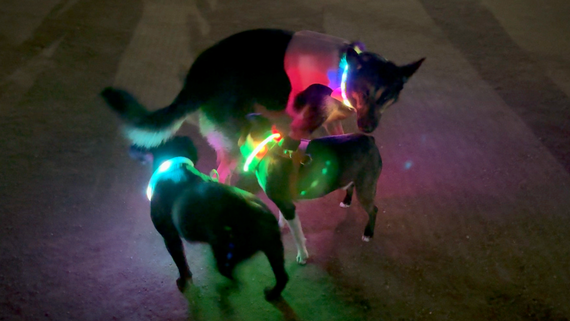 夏の夜にドッグランへ行ったら、お揃いの光る首輪をしたピカピカ軍団に出会いましたw