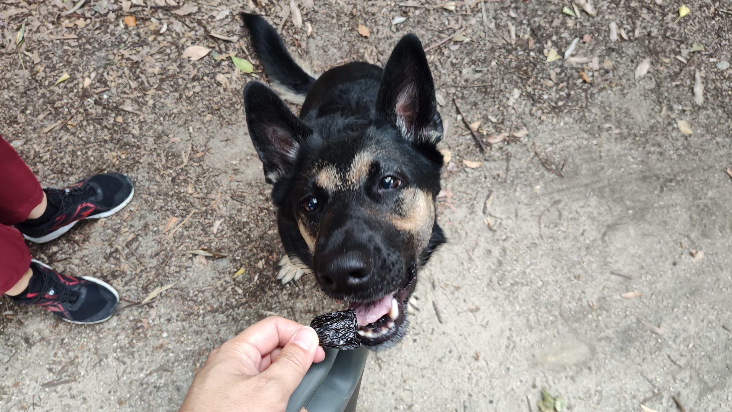 公園のトレッキングコースを散歩中、ふと「おやつ」とつぶやくと愛犬がダッシュでカムバックしてくるw