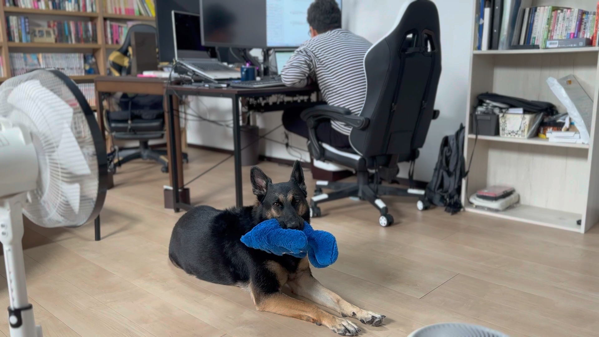 仕事中のオヤジの背後はあたしが守る!飼い犬の鑑のような愛犬に、チラッとオヤツを見せてみたら・・・w