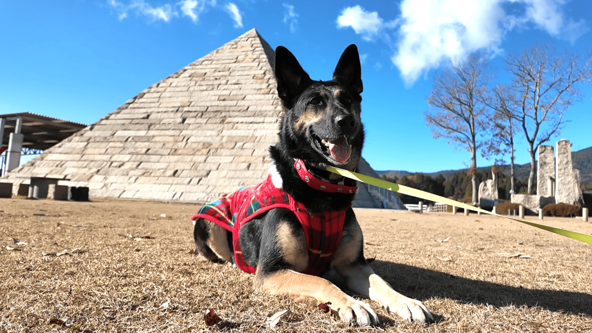 日本最大のピラミッドへ行ったら、愛犬がまさかのスフィンクスになりましたw