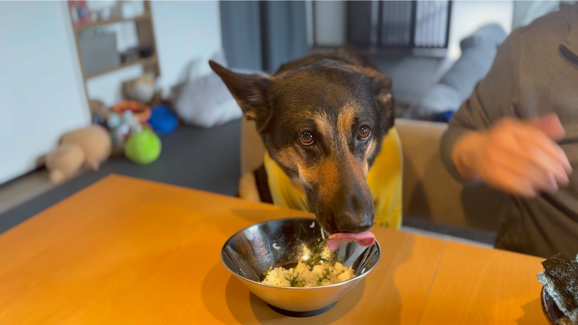今日のお昼ご飯は、釜揚げしらす丼!最初は乗り気じゃなかった愛犬が、春の味覚にすっかりハマりましたw