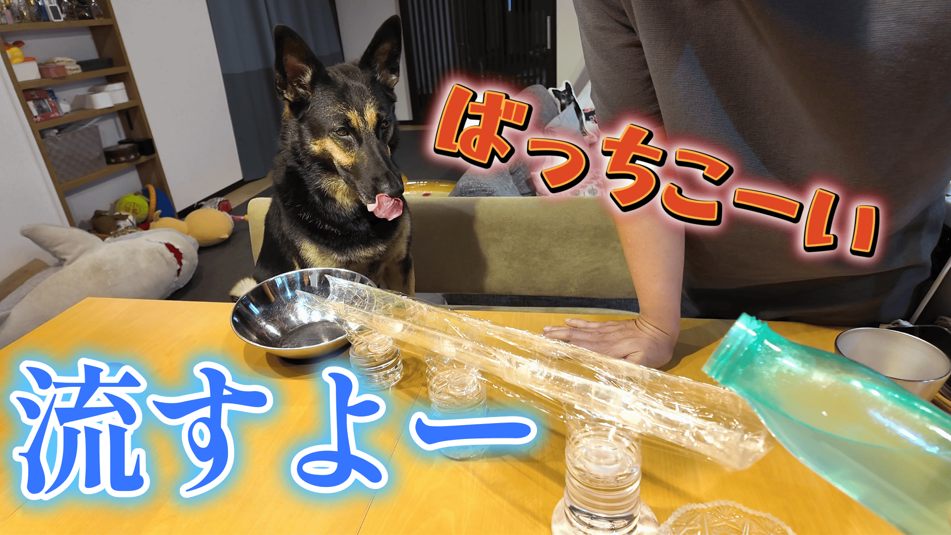 【流しそうめん?】そうめんの代わりに鶏肉流したら、愛犬の反応が爆笑ものでしたw【流しチキン!】