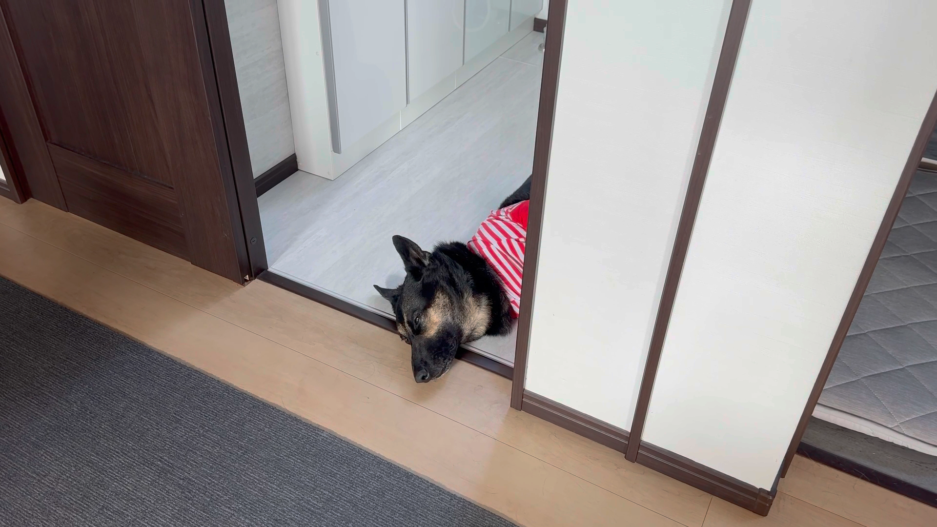 飼い主がアイロンをかけている時、ふと愛犬を見たら・・・!今日も絶好調にフリーダムな寝相でしたw